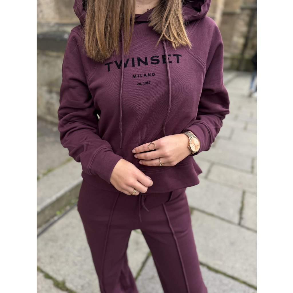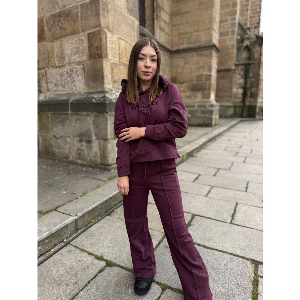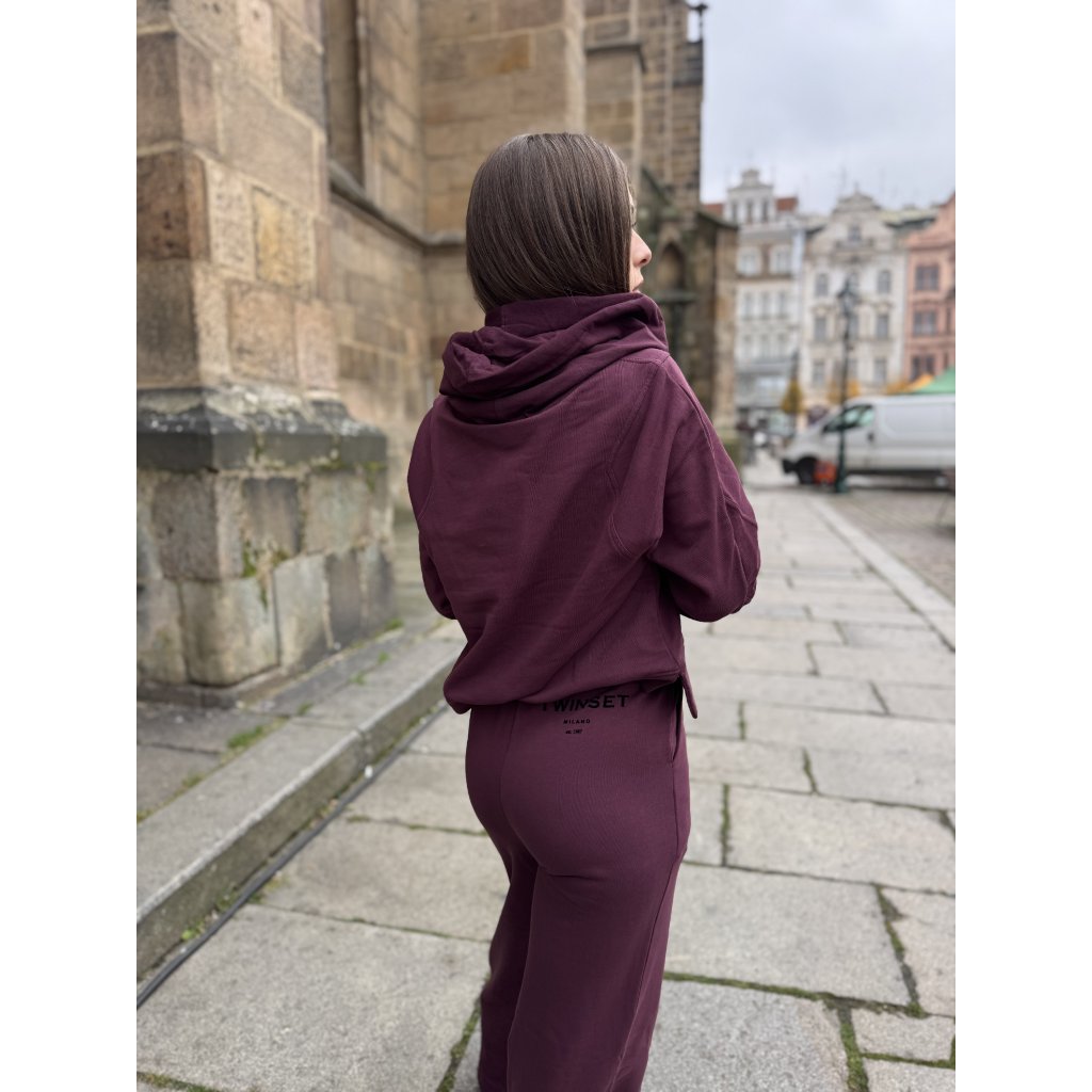 Dámská tepláková souprava Twinset z kvalitní bavlny v elegantní vínové barvě. Stylový komplet s mikinou a kalhotami pro maximální pohodlí a ženský vzhled.