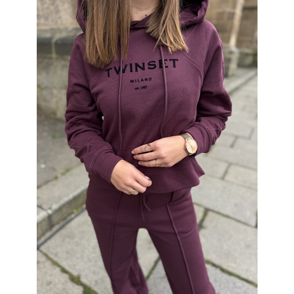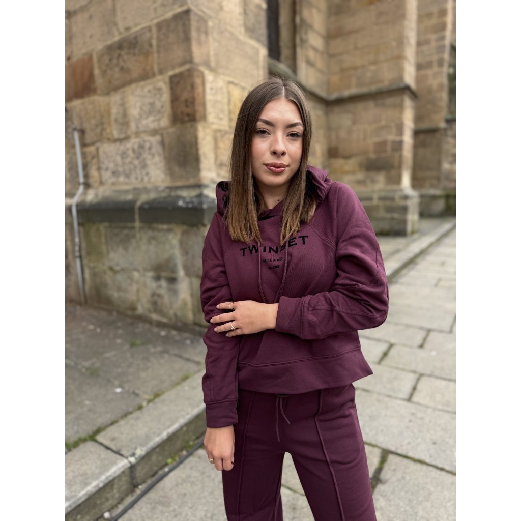 Dámská tepláková souprava Twinset z kvalitní bavlny v elegantní vínové barvě. Stylový komplet s mikinou a kalhotami pro maximální pohodlí a ženský vzhled.