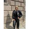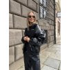 Luxusní dámská bomber bunda od značky Twinset v elegantní černé barvě. Vyrobena z prvotřídní umělé kůže, která nabízí jak výrazný módní vzhled, tak odolnost a komfort nošení. Volnější střih bomberu s klasickým límcem, zipovým zapínáním vpředu a žebrovanými manžetami a spodním lemem dodává bundě sportovní, ale zároveň stylově rafinovaný charakter. Bunda disponuje dvěma předními kapsami a vnitřní podšívkou pro pohodlné vrstvení. Ideální kousek pro městský styl i výraznější outfit.
