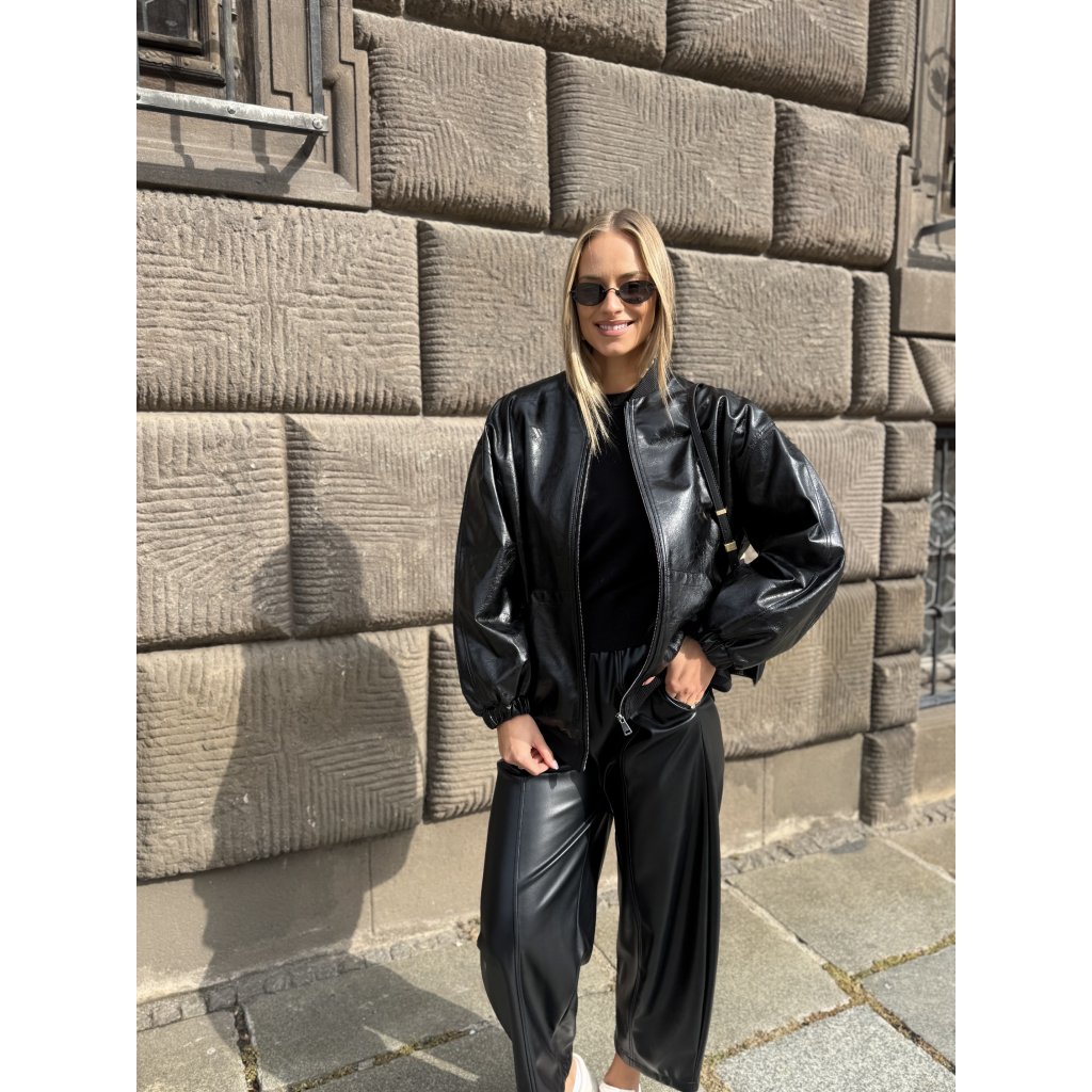 Černá kožená bomber bunda Twinset, prémiové umělé kůže, moderní střih a univerzální styl pro každý den.