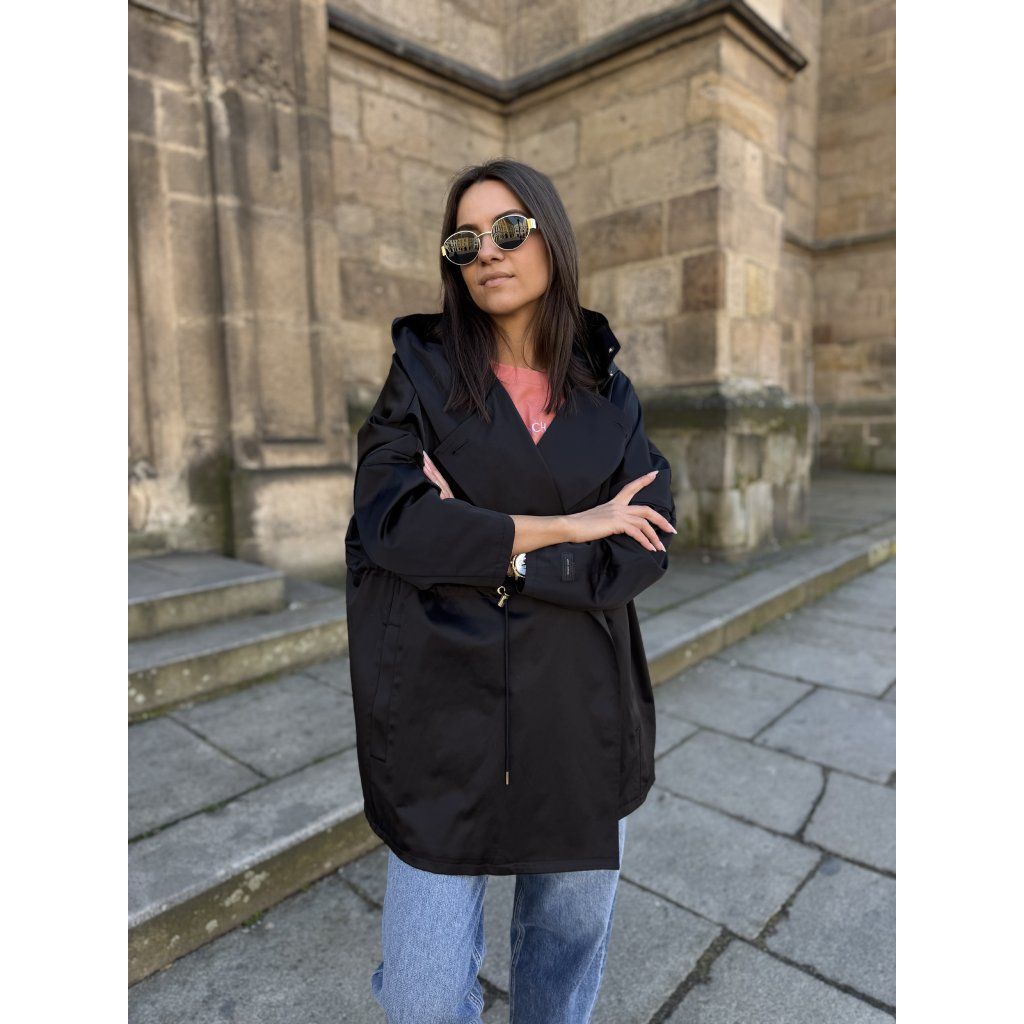 Dámská černá bunda Armani Exchange s kapucí a stahováním v pase, lehký a stylový kousek ideální pro přechodné období.