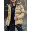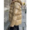 Luxusní dámská zimní bunda Pinko Eleodoro v odstínu Camel Gold zaujme na první pohled svým lesklým povrchem a elegantním vzhledem. Vyrobena z lehkého a odolného crystal nylonu, který chrání před větrem i vlhkostí, zatímco hřejivá výplň zajišťuje maximální komfort během chladných dnů. Krátký střih s objemnějším tvarem a kapucí dodává moderní, ženský vzhled. Bunda má dvojitý zip, praktické boční kapsy a decentní detaily v zlatém tónu, které podtrhují luxusní charakter značky Pinko.