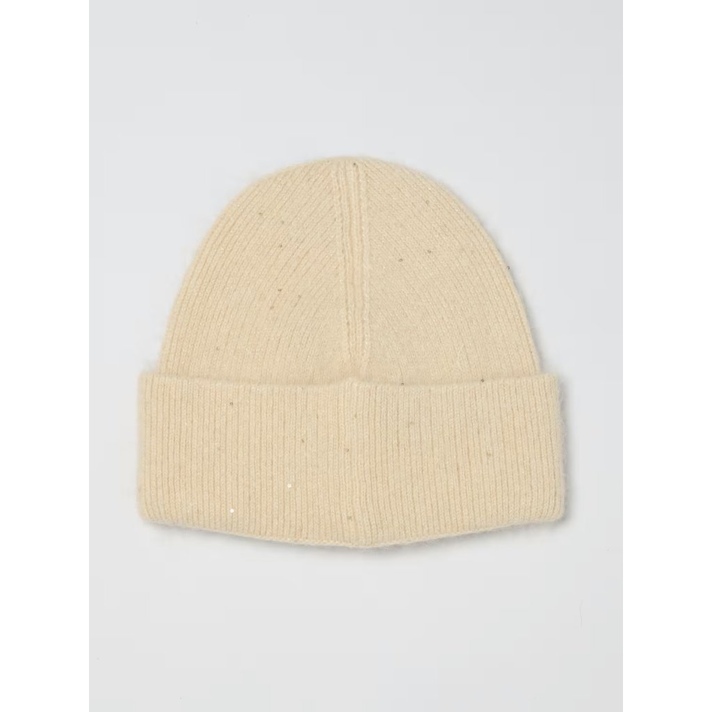Elegantní dámská čepice od značky Twinset v béžové barvě — stylový doplněk, který zahřeje a doladí váš zimní outfit.