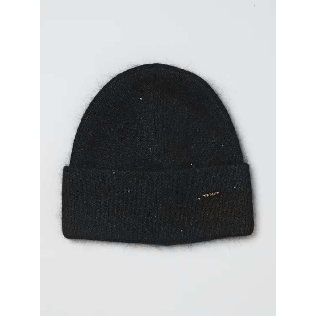 Elegantní černá pletená čepice Twinset — univerzální zimní doplněk, který zahřeje a doplní váš outfit s nádechem sofistikovanosti.