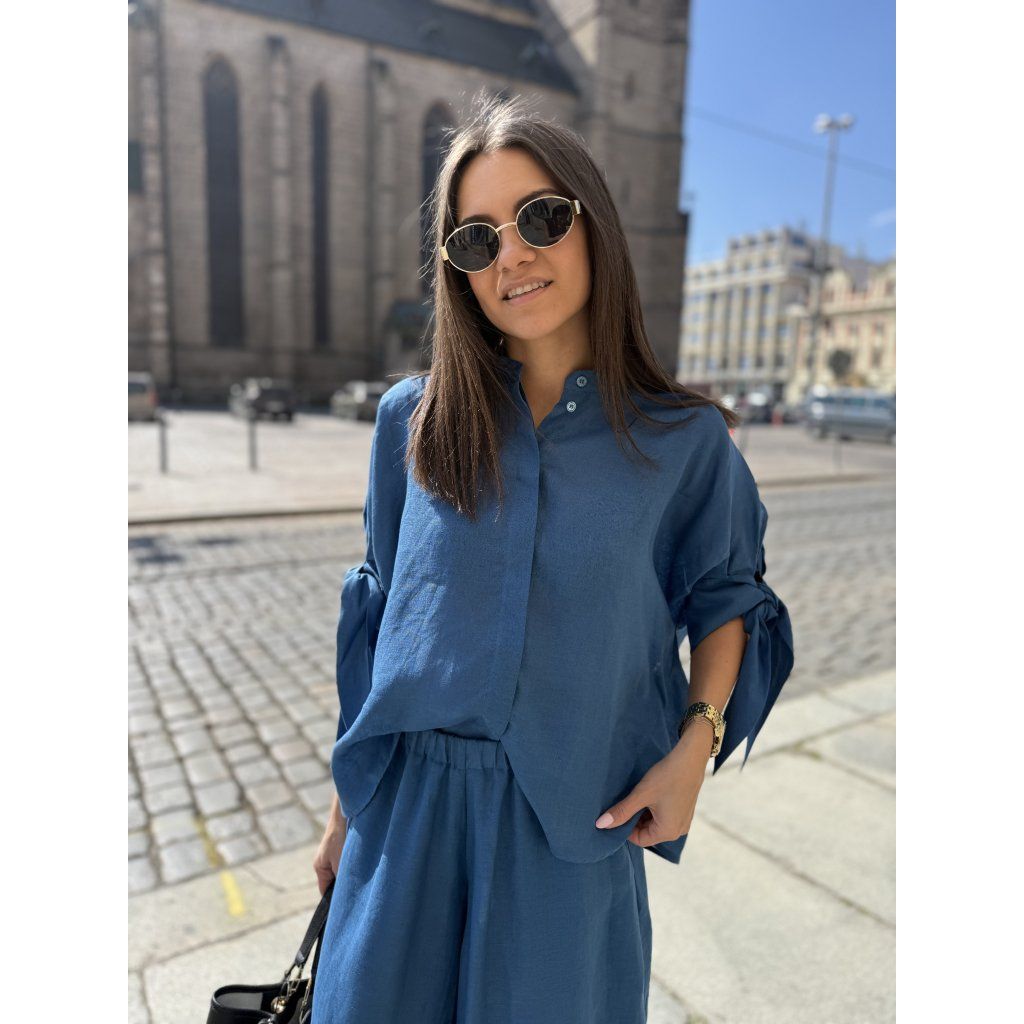 Lehký přírodní materiál (typicky len u tohoto modelu) je prodyšný a příjemný na dotek, což oceníš při celodenním nošení. Modré provedení působí svěže a nadčasově – skvěle se kombinuje s kalhotami, sukní i džínami.