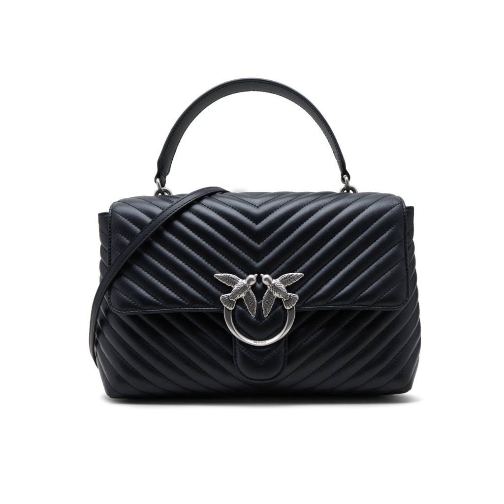 Kožená kabelka PINKO v černé barvě se stříbrnou sponou Love Birds.