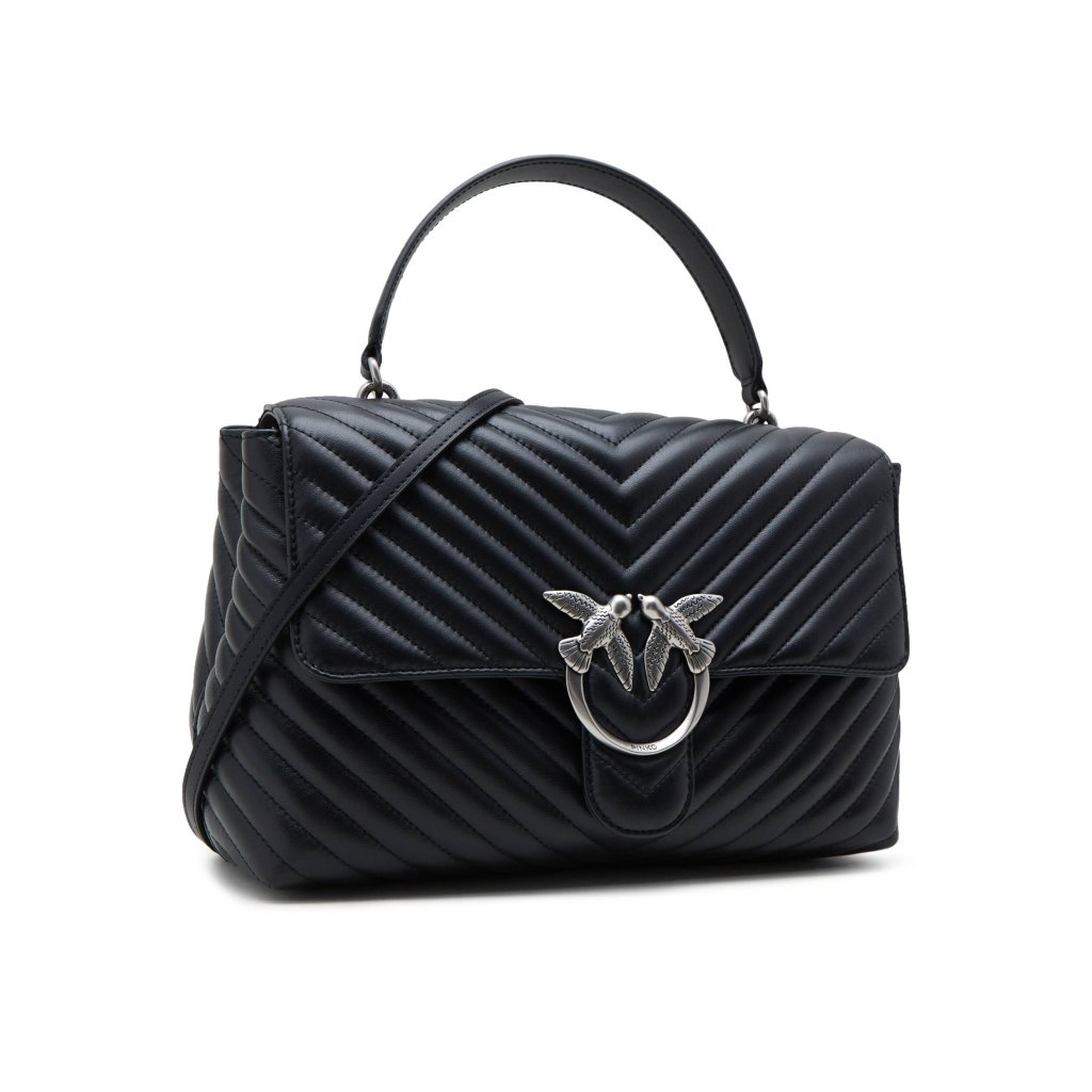 Kožená kabelka PINKO v černé barvě se stříbrnou sponou Love Birds.