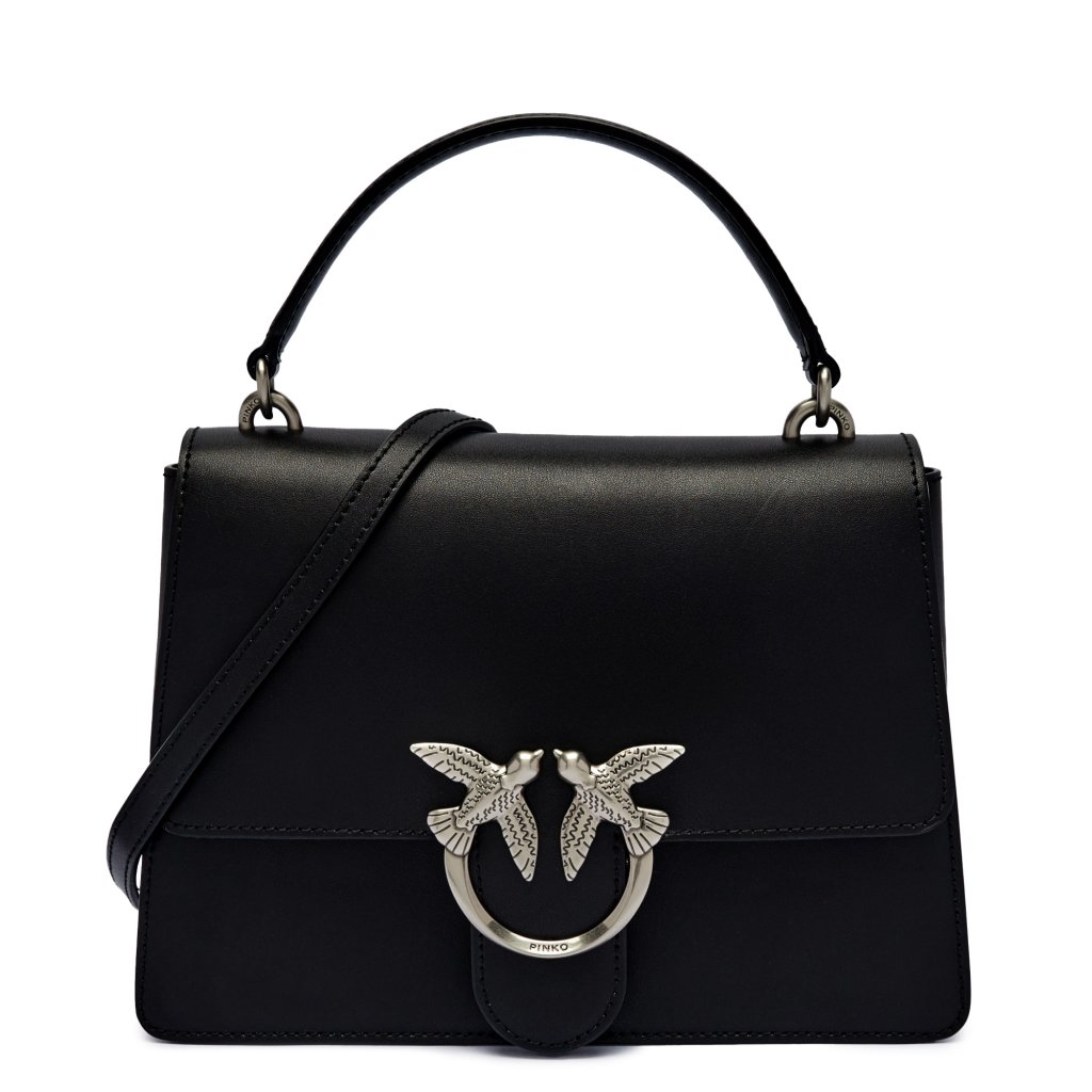Černá kožená kabelka PINKO se stříbrnou sponou Love Birds.