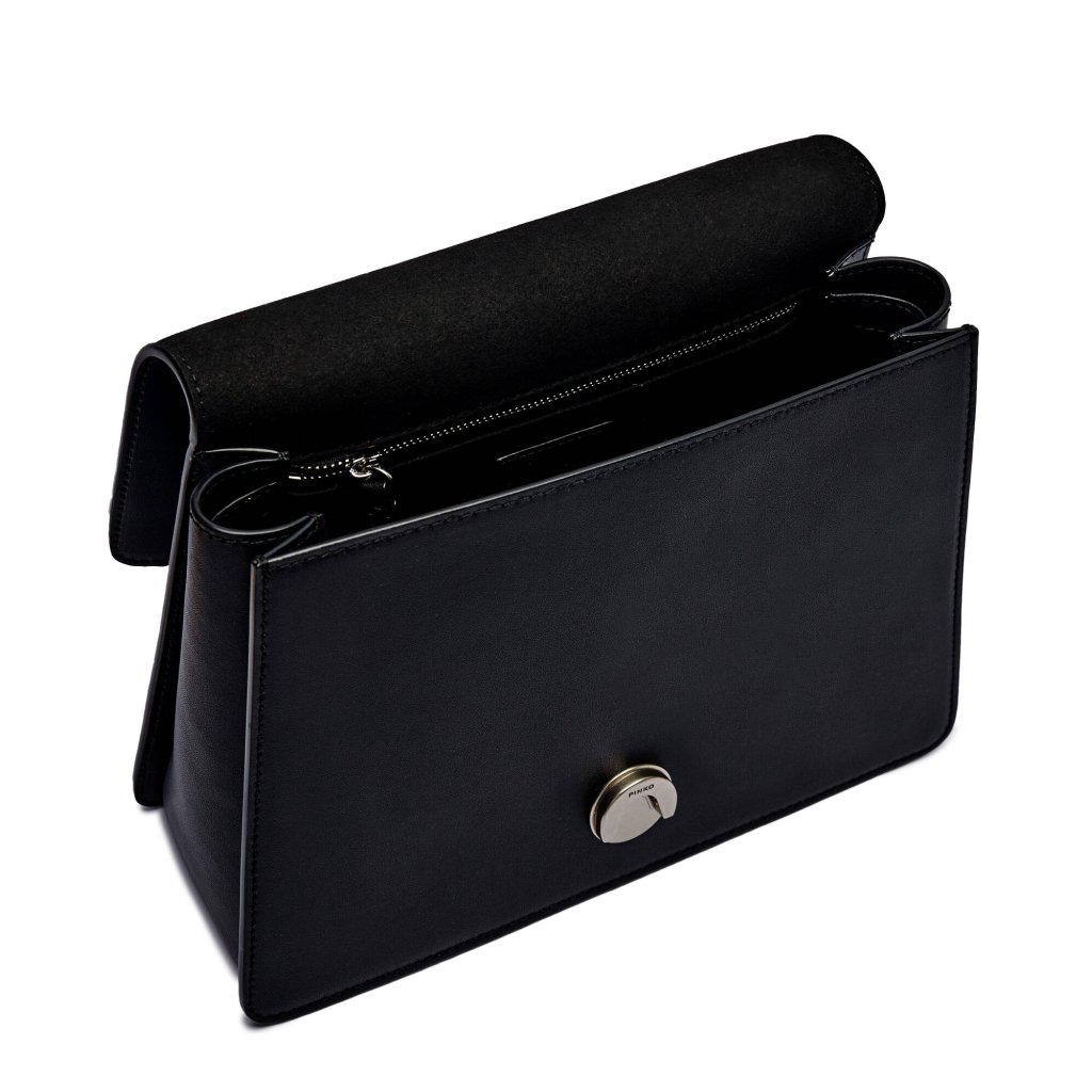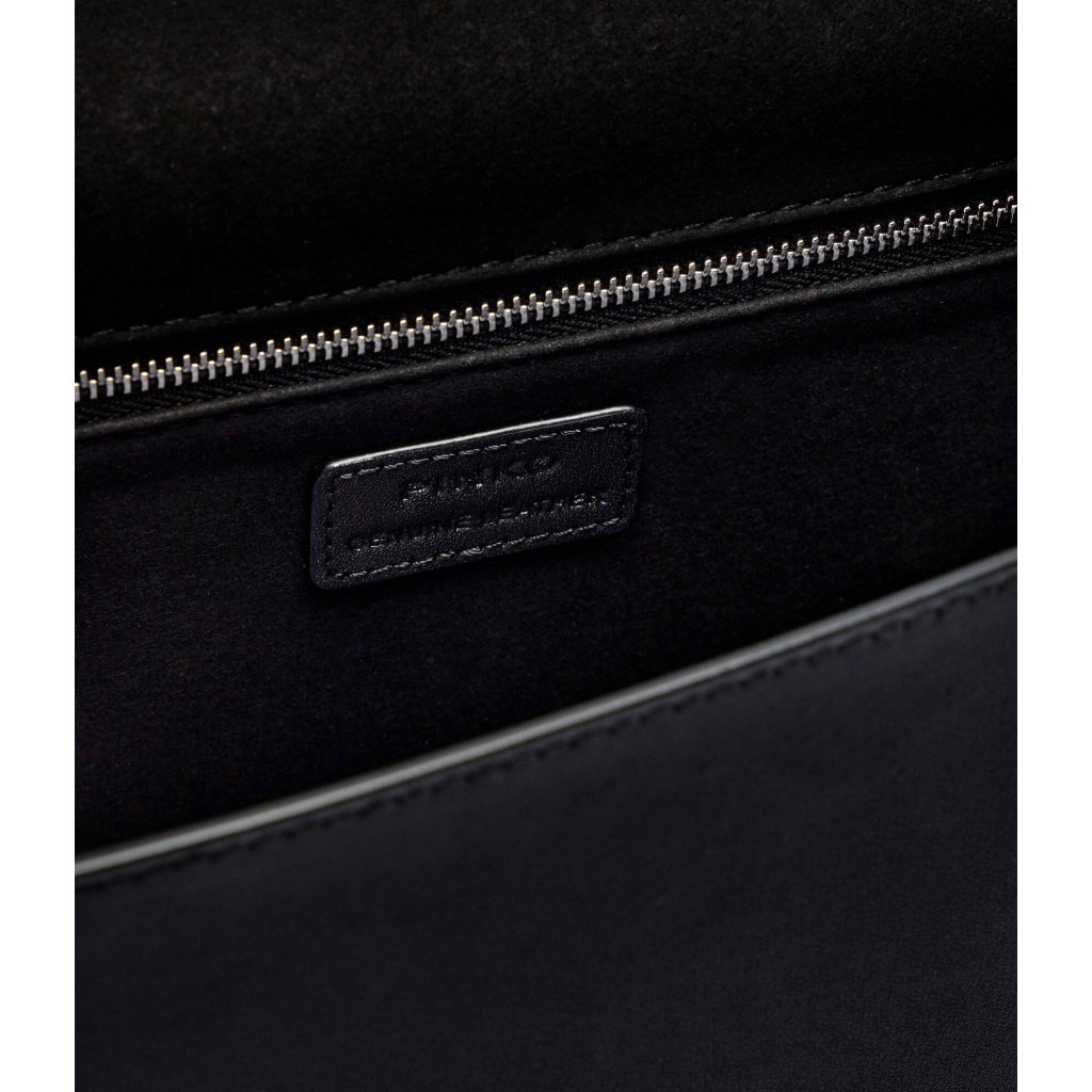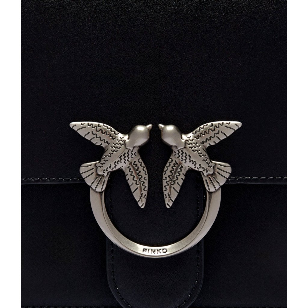 Černá kožená kabelka PINKO se stříbrnou sponou Love Birds.