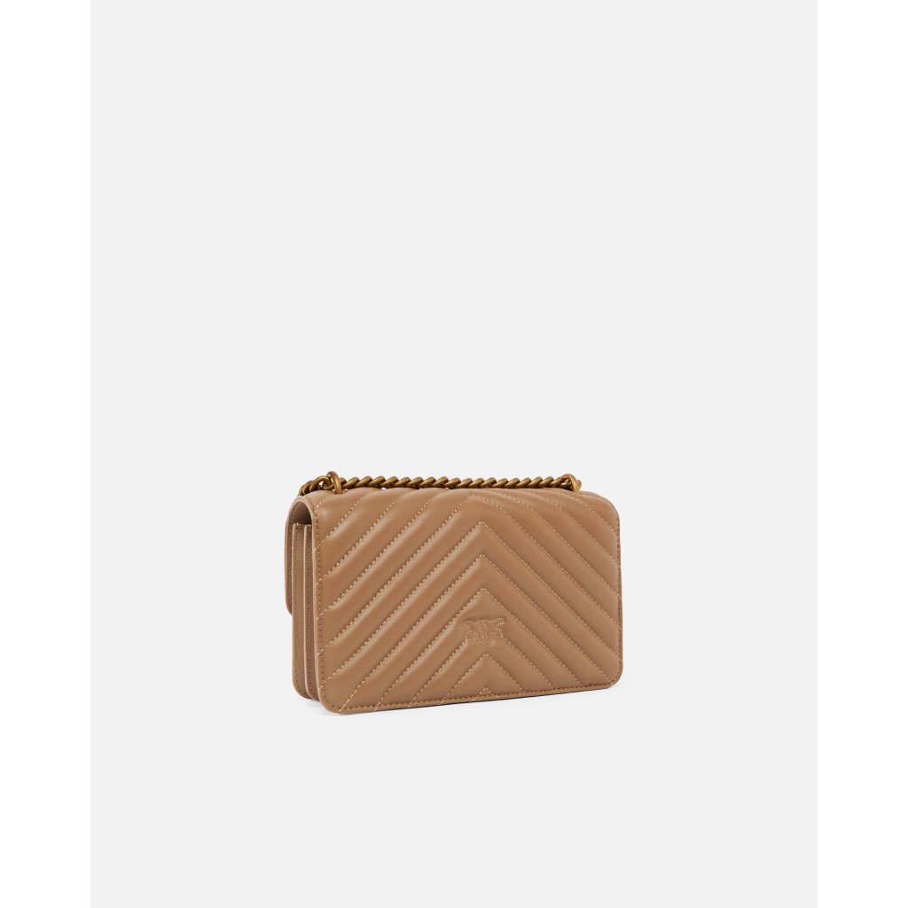 Stylová kabelka PINKO Love Mini Icon Simply v béžovém odstínu je dokonalým doplňkem pro každou příležitost. Vyrobena z měkké kůže s prošívaným vzorem do V a ikonickou zlatou sponou Love Birds. Řetízkový popruh umožňuje nošení přes rameno i crossbody. Elegantní a nadčasový kousek, který dodá každému outfitu luxusní nádech. Rozměry: 21 × 13 × 6 cm.