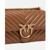 Hnědá kožená kabelka PINKO se zlatou sponou Love Birds a řetízkovým popruhem. Elegantní a nadčasová.