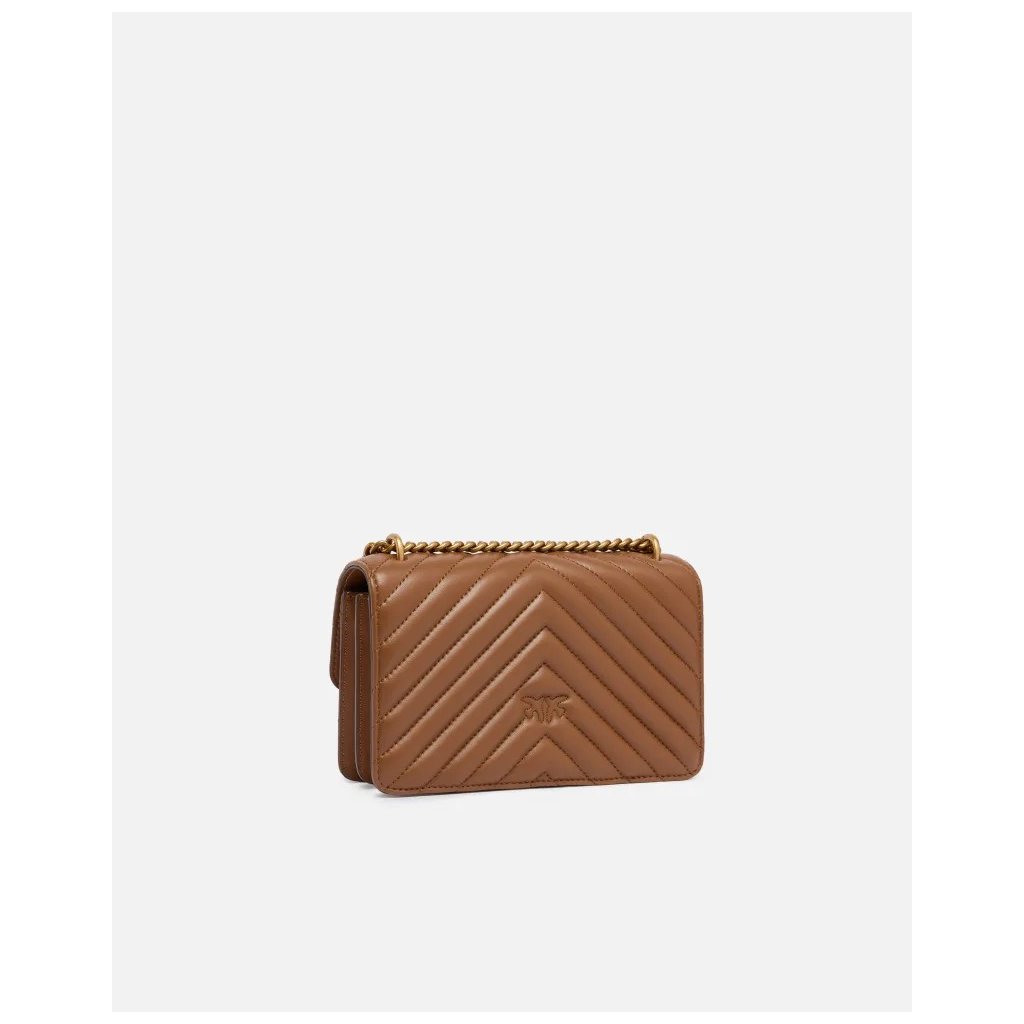 Elegantní kabelka PINKO Love Mini Icon Simply v teplém hnědém odstínu je vyrobena z kvalitní měkké kůže s charakteristickým prošíváním do tvaru V. Ozdobena ikonickou zlatou sponou Love Birds a doplněna kovovým řetízkovým popruhem. Ideální velikost pro nezbytnosti, které chcete mít vždy po ruce. Stylový doplněk pro každodenní i večerní outfit. Rozměry: 21 × 13 × 6 cm.