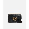 Elegantní kabelka PINKO Love Bag One z černé napa kůže je symbolem nadčasového stylu a ženské elegance. Prošívání ve vzoru chevron dodává modelu sofistikovaný vzhled, zatímco ikonická kovová spona Love Birds ve zlatém tónu podtrhuje luxusní charakter. Vnitřek je členěný s kapsami a jemnou podšívkou. Kombinovaný popruh z řetízku a kůže umožňuje pohodlné nošení. Rozměry: 27 × 16 × 8 cm.