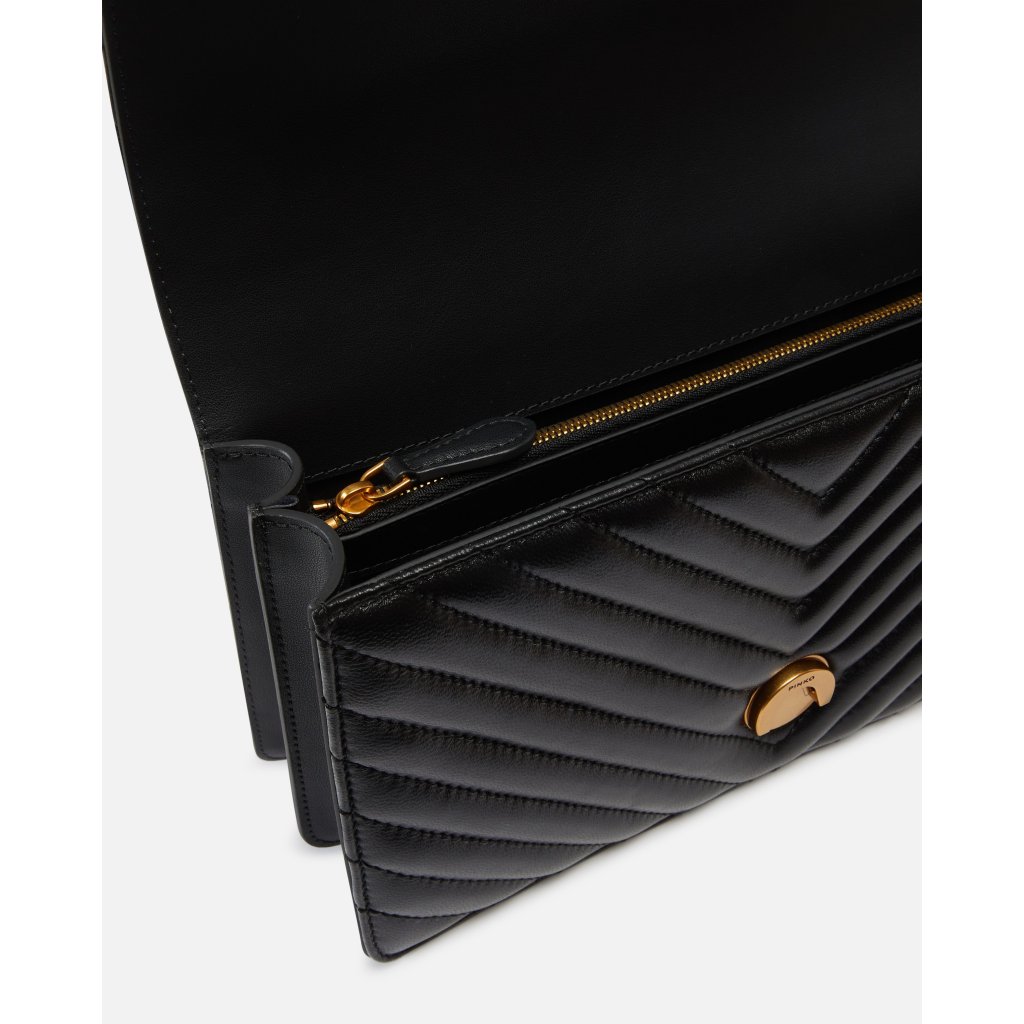 Stylová kabelka PINKO Love Bag One z černé napa kůže s prošíváním, zlatou ikonickou sponou Love Birds a řetízkovým popruhem.