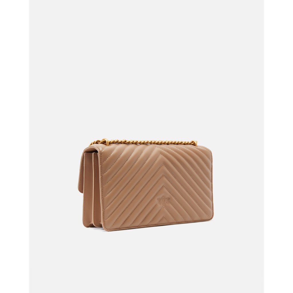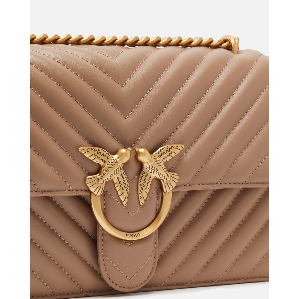Elegantní kabelka PINKO Love Bag One z napa kůže s chevron vzorem, zlatou sponou Love Birds a řetízkovým popruhem.