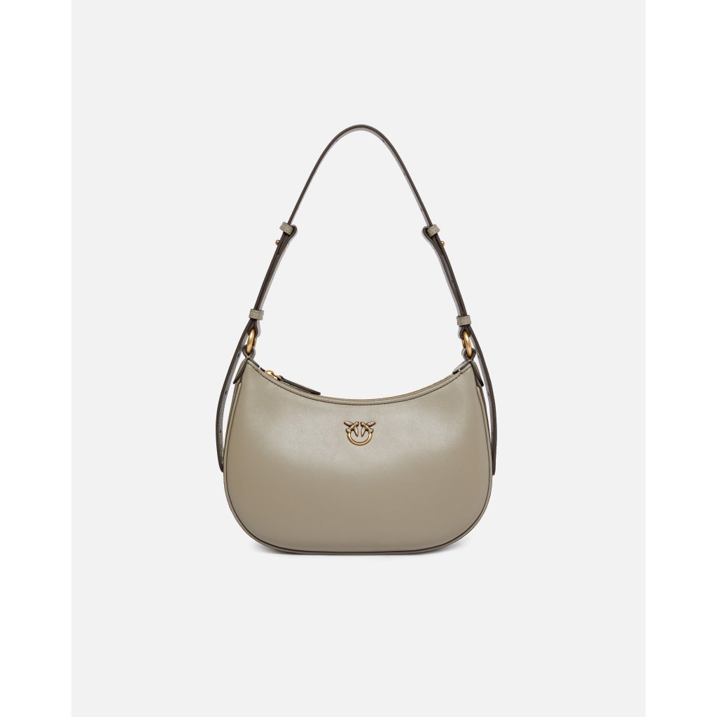 Elegantní šedobéžová kabelka PINKO se zlatým logem Love Birds. Minimalistická, stylová a nadčasová.