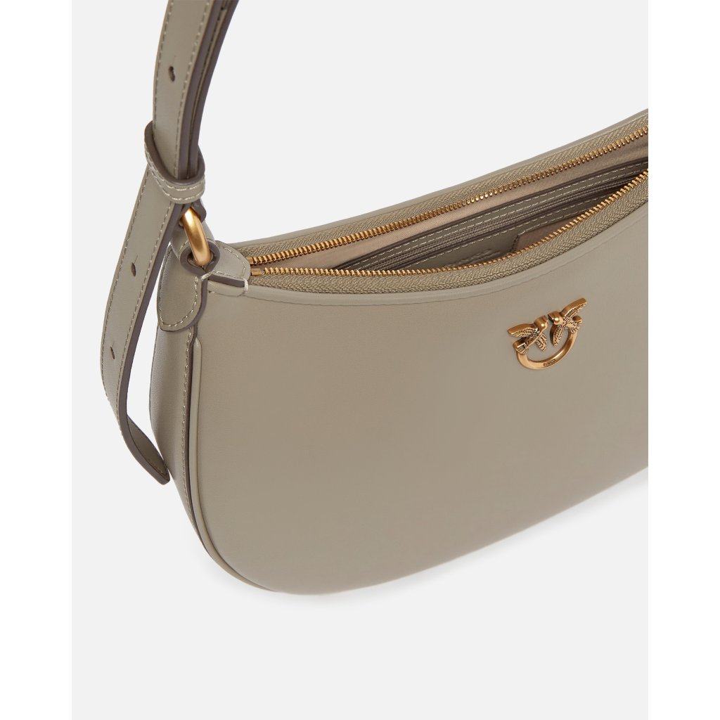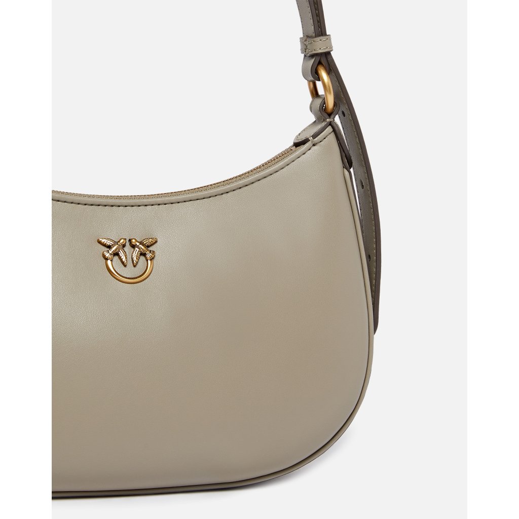 Stylová kabelka PINKO Half Moon Mini v sofistikovaném šedobéžovém odstínu z hladké kůže s jemným leskem. Zlaté logo Love Birds dodává jemný luxusní detail, zatímco nastavitelný popruh umožňuje pohodlné nošení přes rameno i crossbody. Díky svému elegantnímu oblému tvaru a praktickému rozměru se hodí pro každý den.