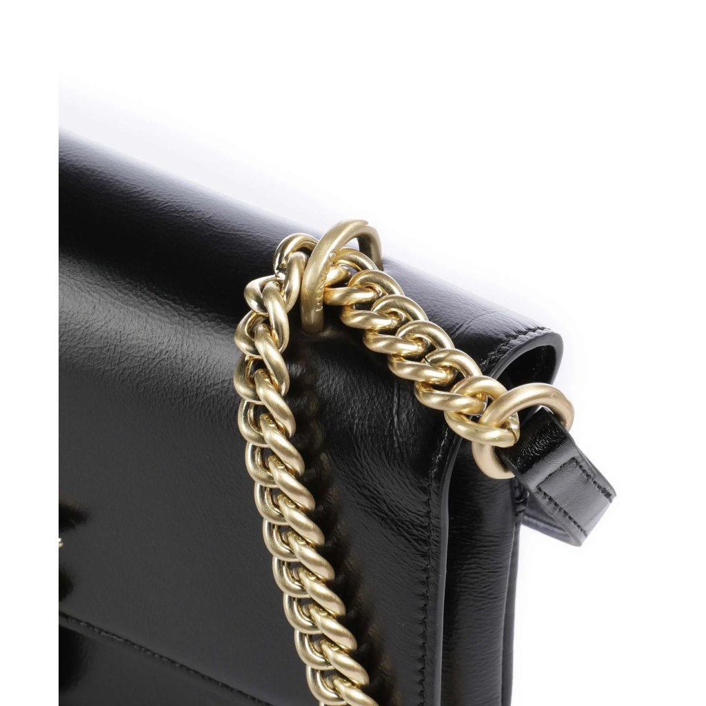 Černá kabelka PINKO Love One Classic z lesklé kůže působí elegantně a nadčasově. Ikonická spona Love Birds ve zlatém tónu dodává luxusní vzhled, zatímco řetízkové ramínko s koženou částí zaručuje pohodlí při nošení. Kabelka nabízí dostatek prostoru na všechny nezbytnosti a je ideální pro každodenní nošení i večerní příležitosti.