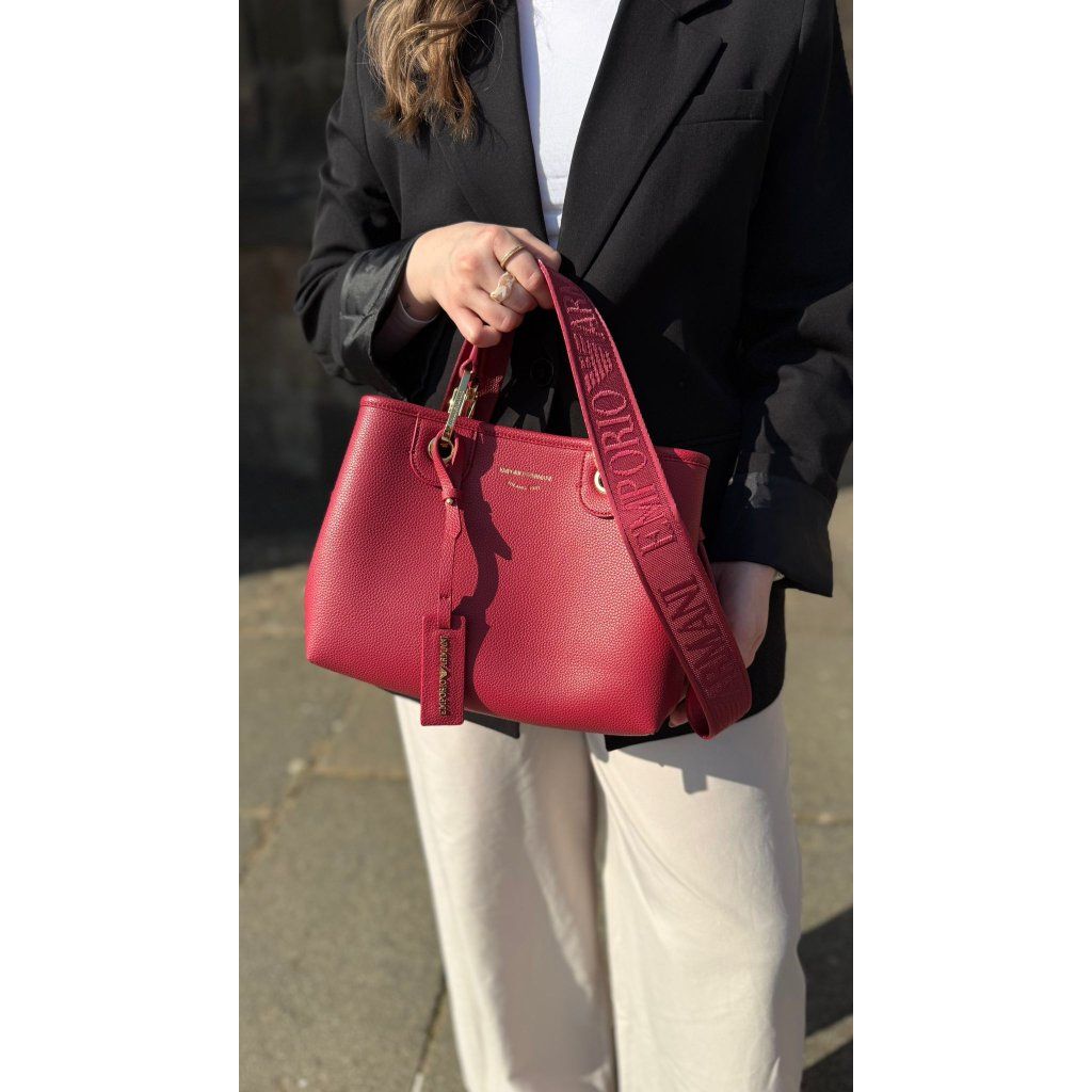 Dámská kabelka Emporio Armani EW000361 AF12036 M5068 v elegantní červené barvě. Stylový a kompaktní model s pevnými uchy a luxusním minimalistickým designem.