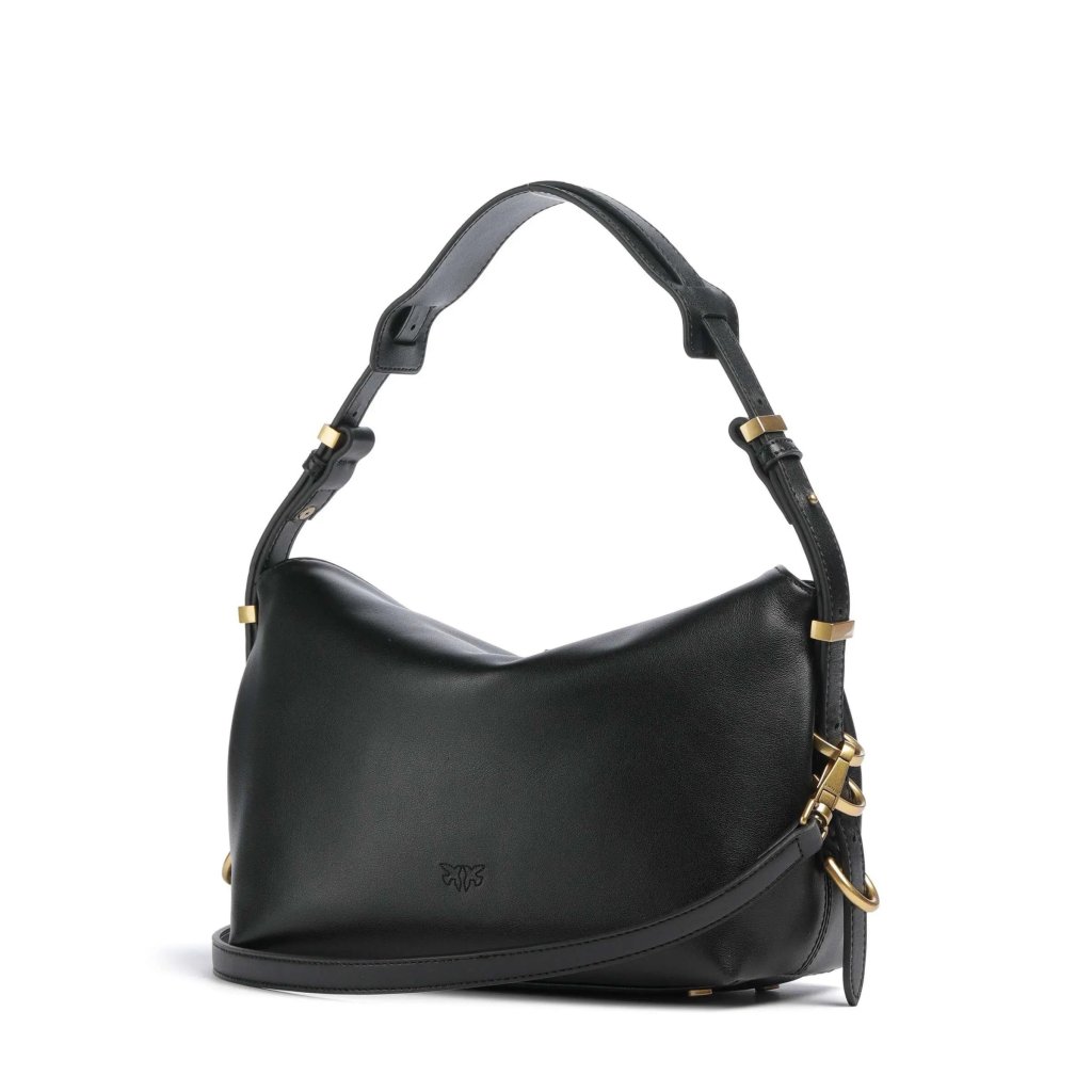 Elegantní kožená černá kabelka PINKO s kovovým zapínáním a dvěma popruhy.
