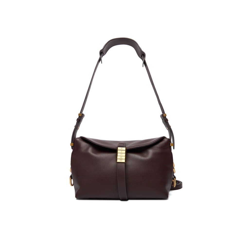 Kožená kabelka PINKO v bordó barvě se zlatým zapínáním.