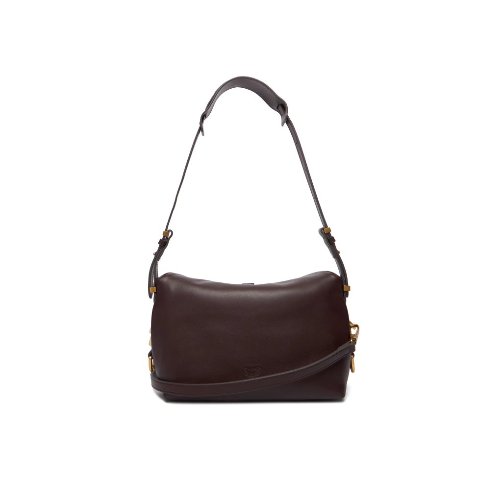 Kožená kabelka PINKO v bordó barvě se zlatým zapínáním.
