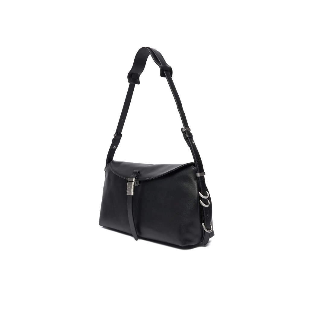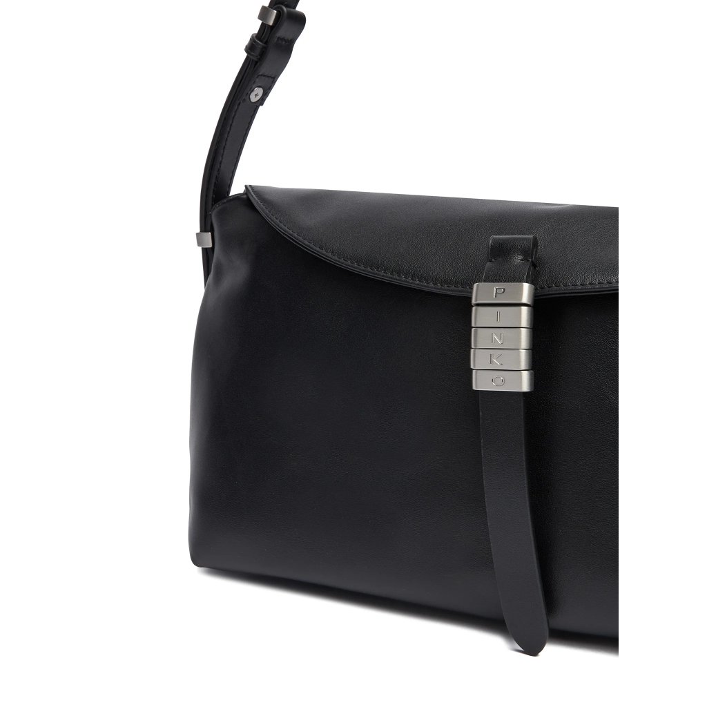 Černá kožená kabelka PINKO se stříbrným zapínáním, stylový a praktický doplněk na každý den.