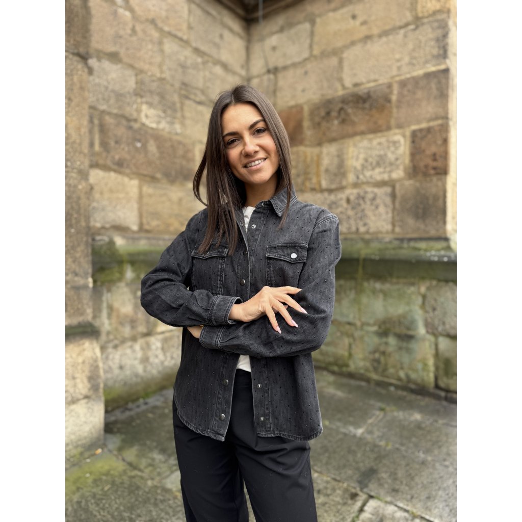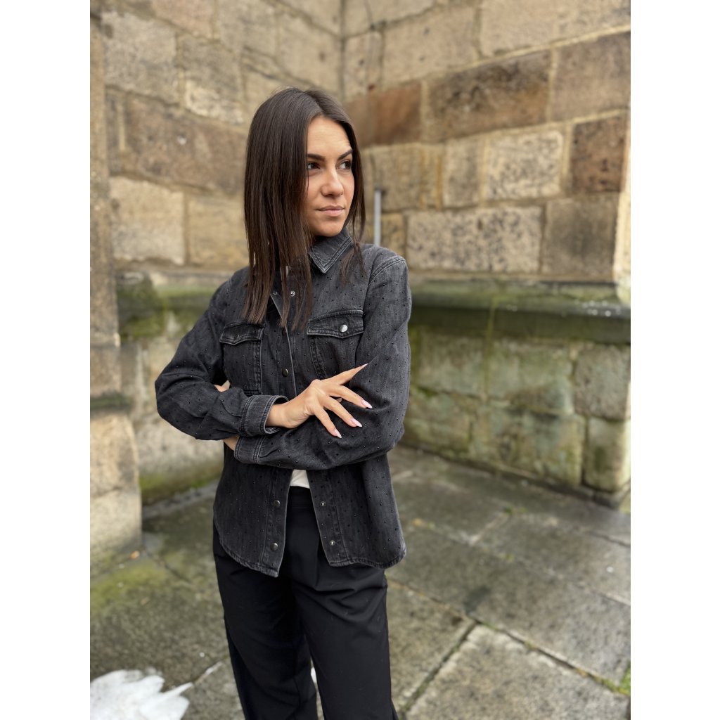 Černá dámská košile Twinset 252TT2272 zdobená kamínky. Stylový a elegantní kousek pro denní i večerní outfity.
