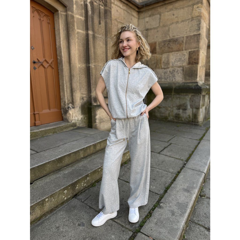 Dámská mikinová vesta Twinset 261LL2BBB 12837 v šedé barvě. Lehký a stylový kousek s kapucí a ozdobnými detaily na ramenou.