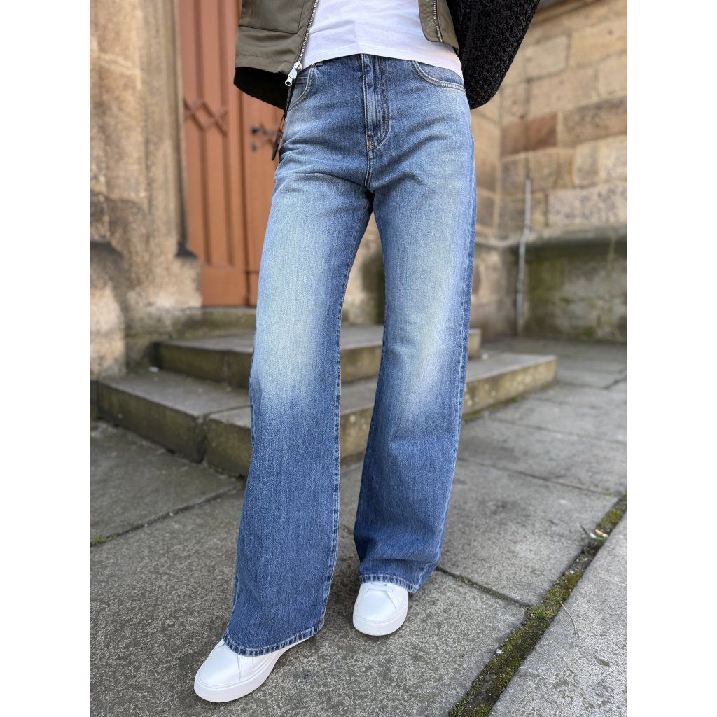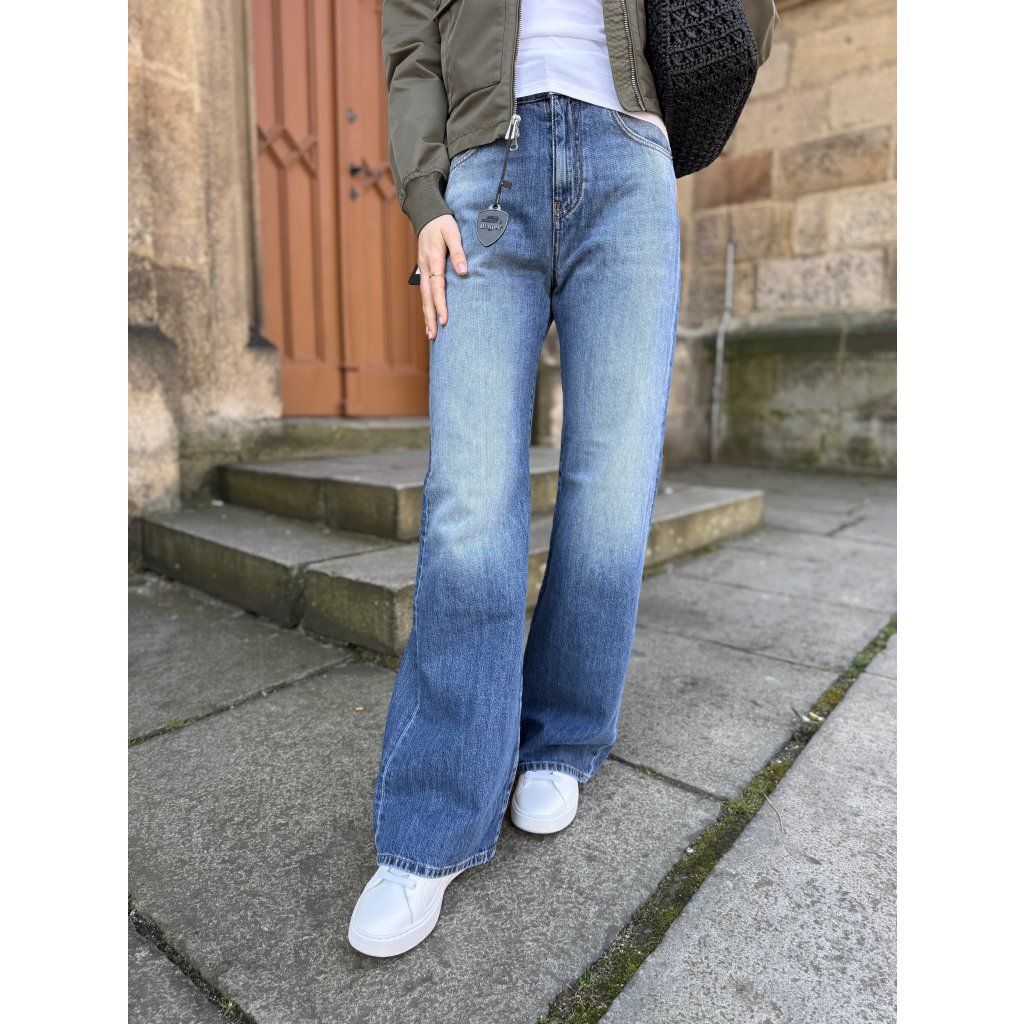 Dámské džíny Pinko WANDA 101733 A323 PJO v modré barvě. Moderní wide leg střih s vintage efektem.