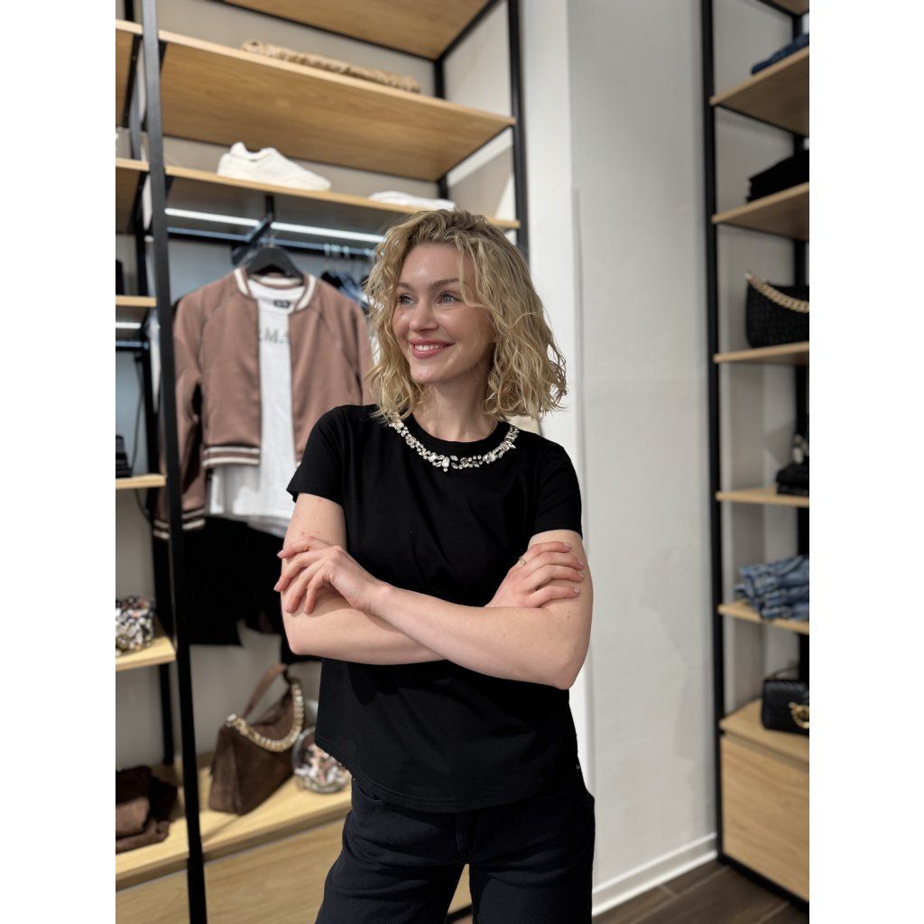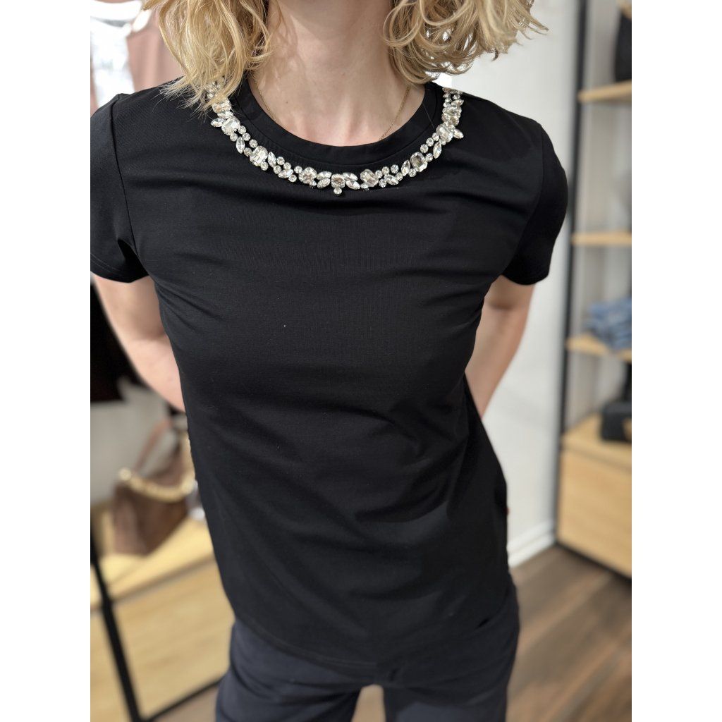 Dámské triko Twinset 261LL2BEE 12837 v černé barvě. Elegantní basic kousek se zdobeným výstřihem.