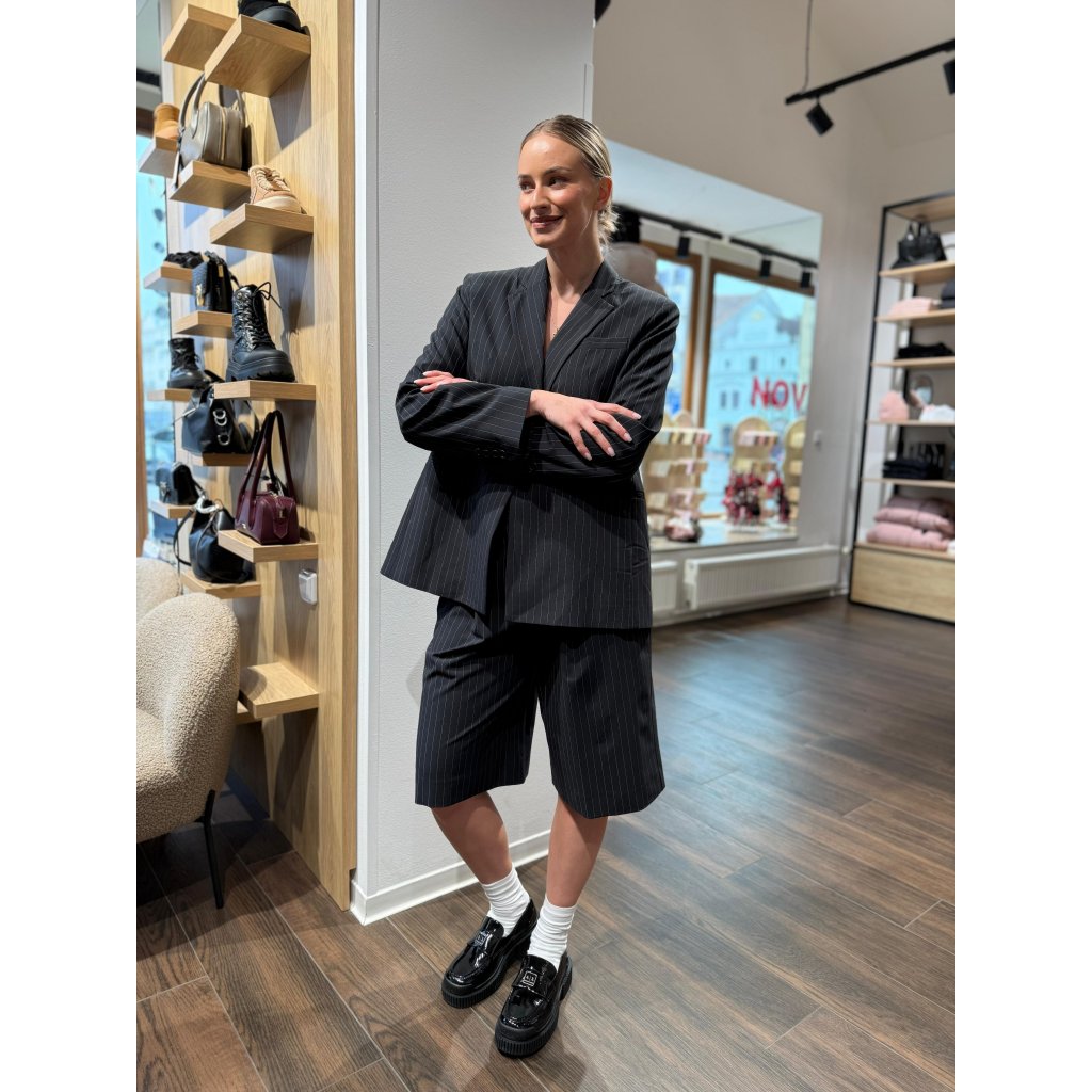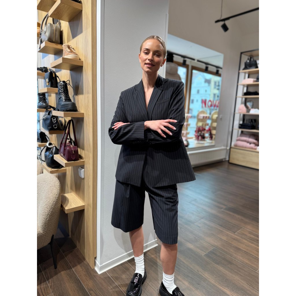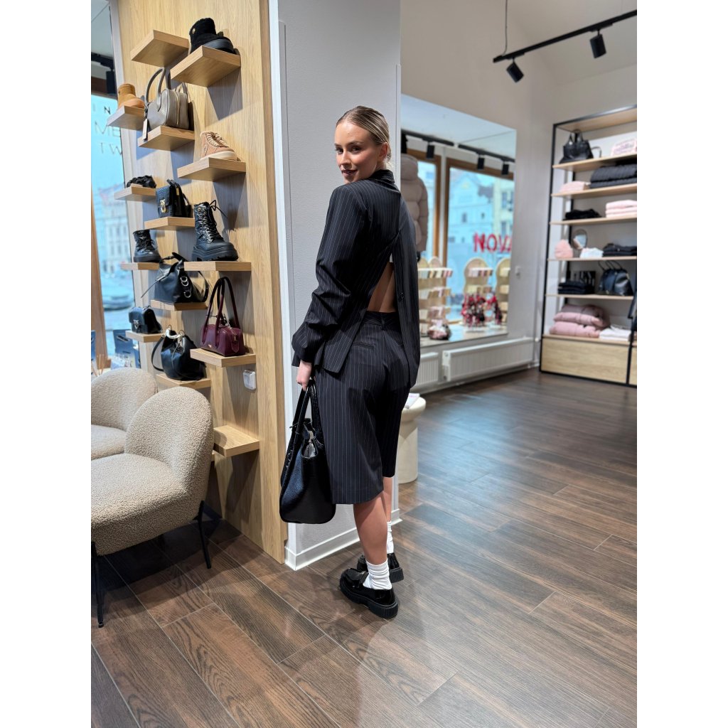 Materiál s jemným svislým proužkem opticky prodlužuje nohy a dodává bermudám sofistikovaný vzhled. V pase jsou pohodlné a dobře sedí, přičemž zachovávají komfort v pohybu. Skvěle doplní oversized sako, košili i topy a umožní vytvořit ucelený outfit.