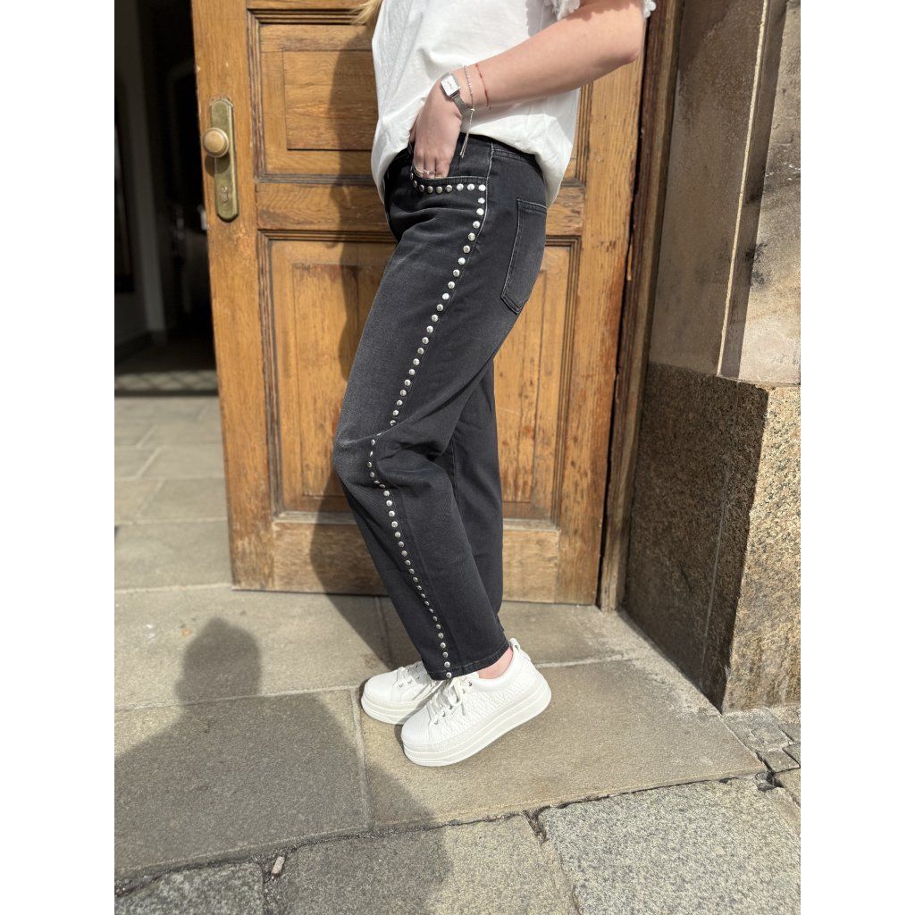 Dámské černé džíny Twinset s kovovými cvočky na kapsách a po stranách nohavic, moderní denimový model s pohodlným strečovým materiálem a stylovým výrazným detailem.