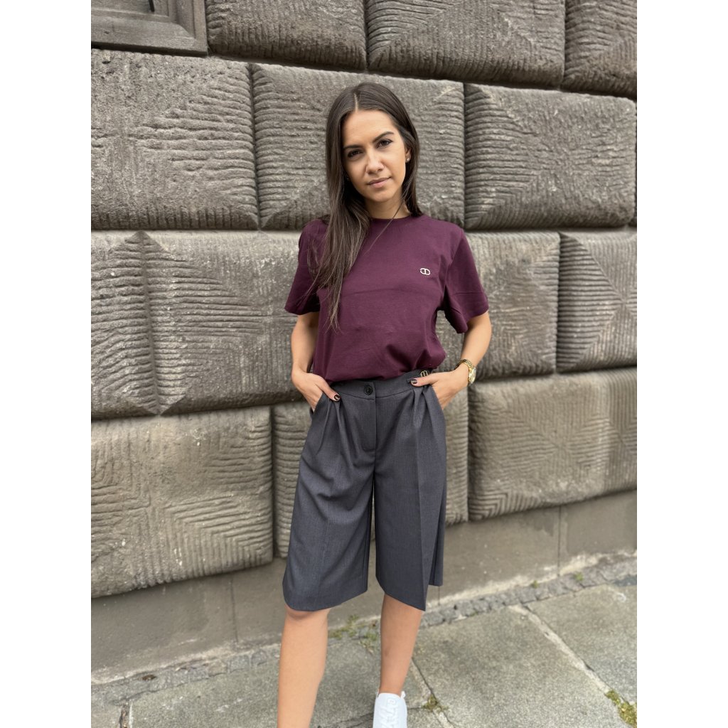 Šedé dámské bermudy Twinset (252TF2042) z lehké viskózy – elegantní volný střih, vysoký pas a styl pro každý den.