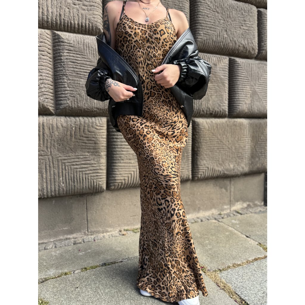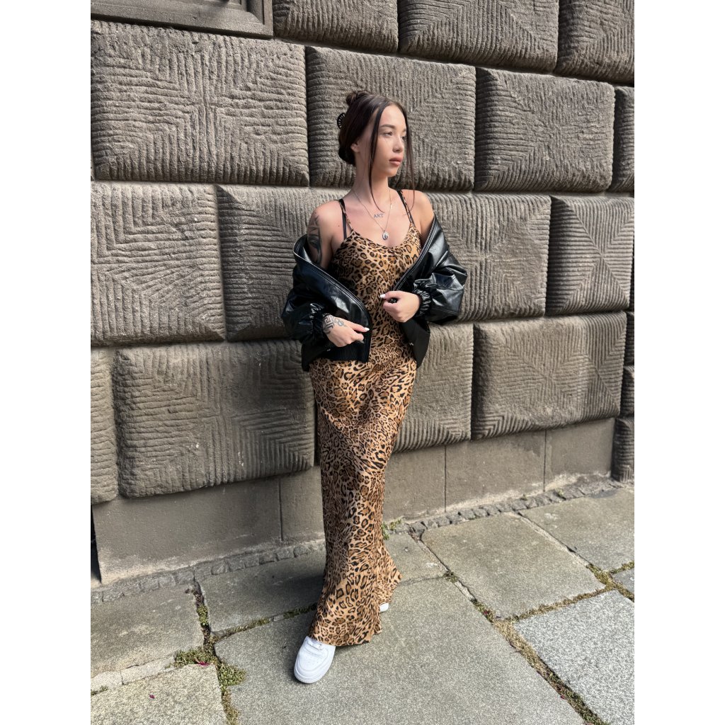 Stylové dámské šaty značky Twinset s výrazným zvířecím (leopardím) vzorem představují dokonalé spojení ženskosti, elegance a originality. Jsou vyrobeny z lehkého, vzdušného materiálu, který krásně splývá a zajišťuje maximální pohodlí při nošení. Šaty mají volnější střih, výstřih do „V“a maxi délku. Šaty perfektně zvýrazní siluetu. Díky svému designu se hodí jak na běžné nošení, tak i na společenské příležitosti.