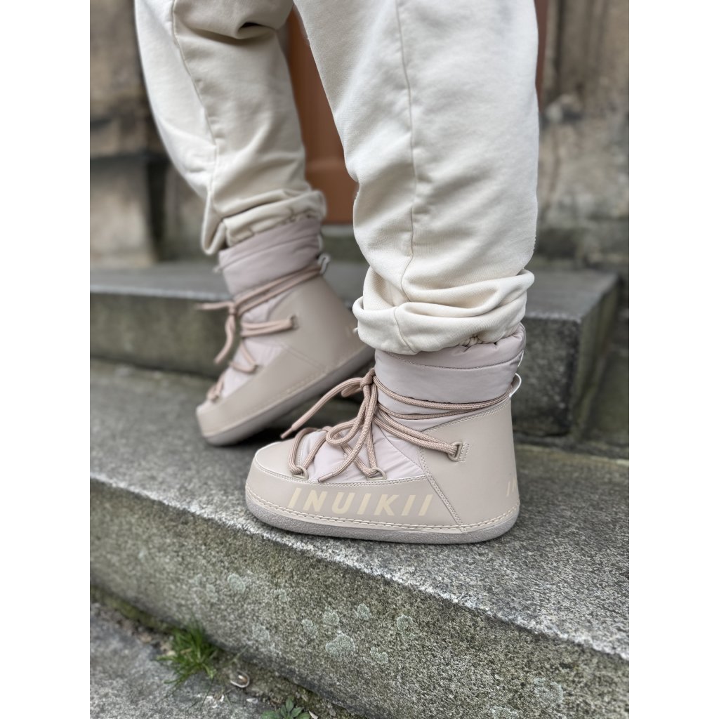 INUIKII je švýcarská prémiová značka založená v roce 2012, která se specializuje na luxusní zimní obuv kombinující styl, funkčnost a kvalitu. Název značky je spojení slov z grónštiny: "inu" (hezká dívka) a "ikii" (zima), což odráží její koncept spojení krásy a chladu. Boty jsou ručně vyráběné z prémiových materiálů jako kůže a ovčí vlna, jsou voděodolné a designově se zaměřují na udržitelnost a nadčasovost.