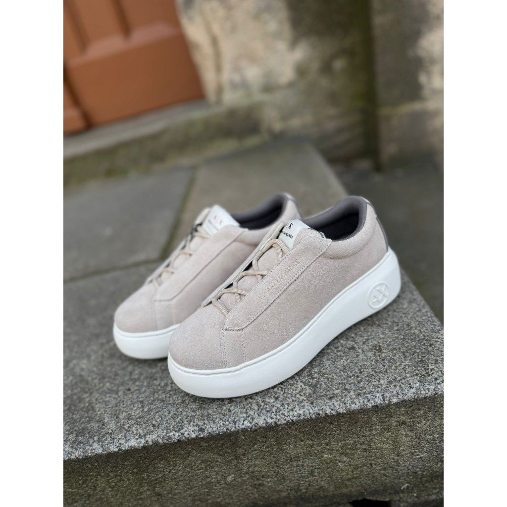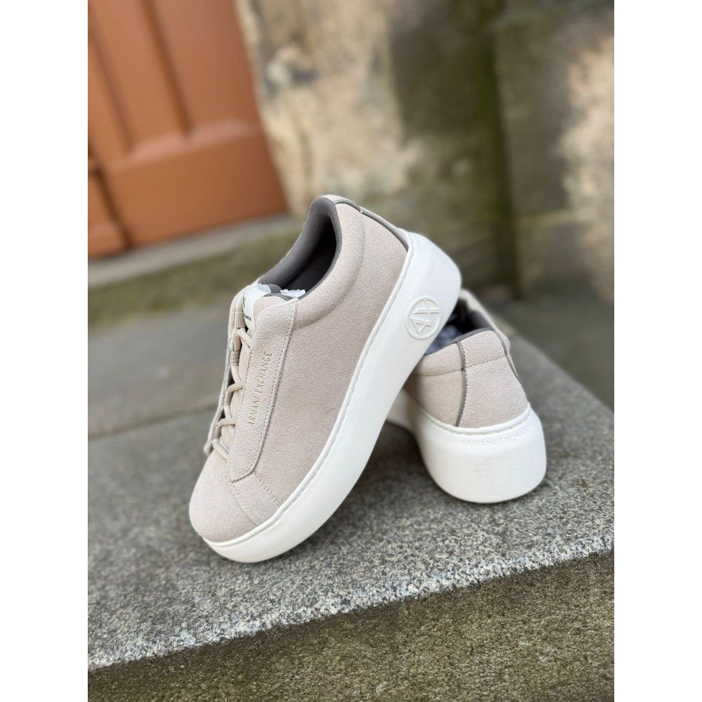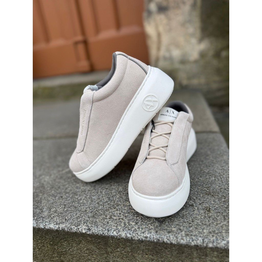 Dámské tenisky Armani Exchange XW001666 AF17465 v jemném béžovém odstínu představují moderní a nadčasový model pro každodenní outfit. Svršek z materiálu se semišovým efektem dodává botám elegantní vzhled, zatímco pevná bílá podrážka zajišťuje stabilitu a pohodlí při nošení. Minimalistický design doplňuje logo A|X Armani Exchange na jazyku a reliéfní znak na boční části podrážky. Díky jednoduchému stylu se tenisky snadno kombinují s džínami, kalhotami i šaty a jsou ideální volbou pro pohodlný městský outfit.