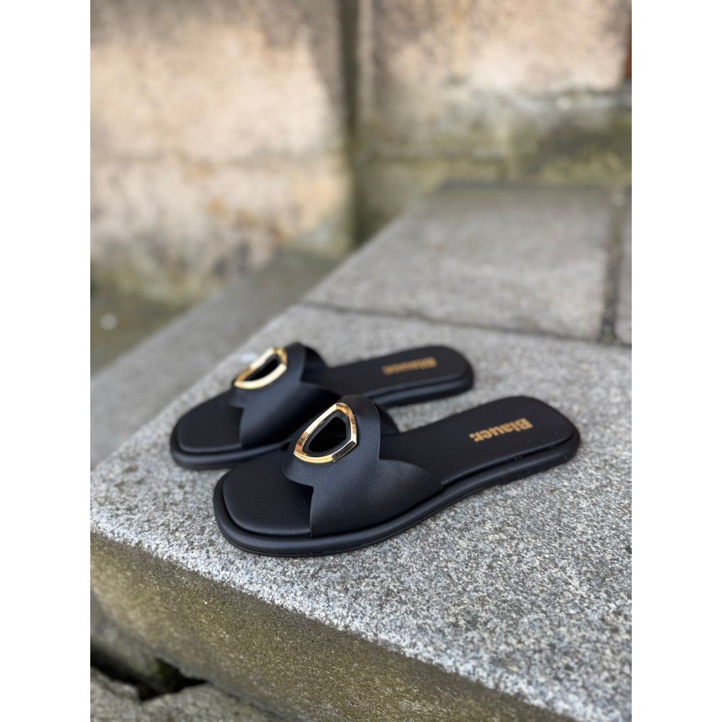 Dámské pantofle Blauer S6MOODY01/LEA BLK v černé barvě. Elegantní kožený model s minimalistickým designem pro pohodlné letní nošení.