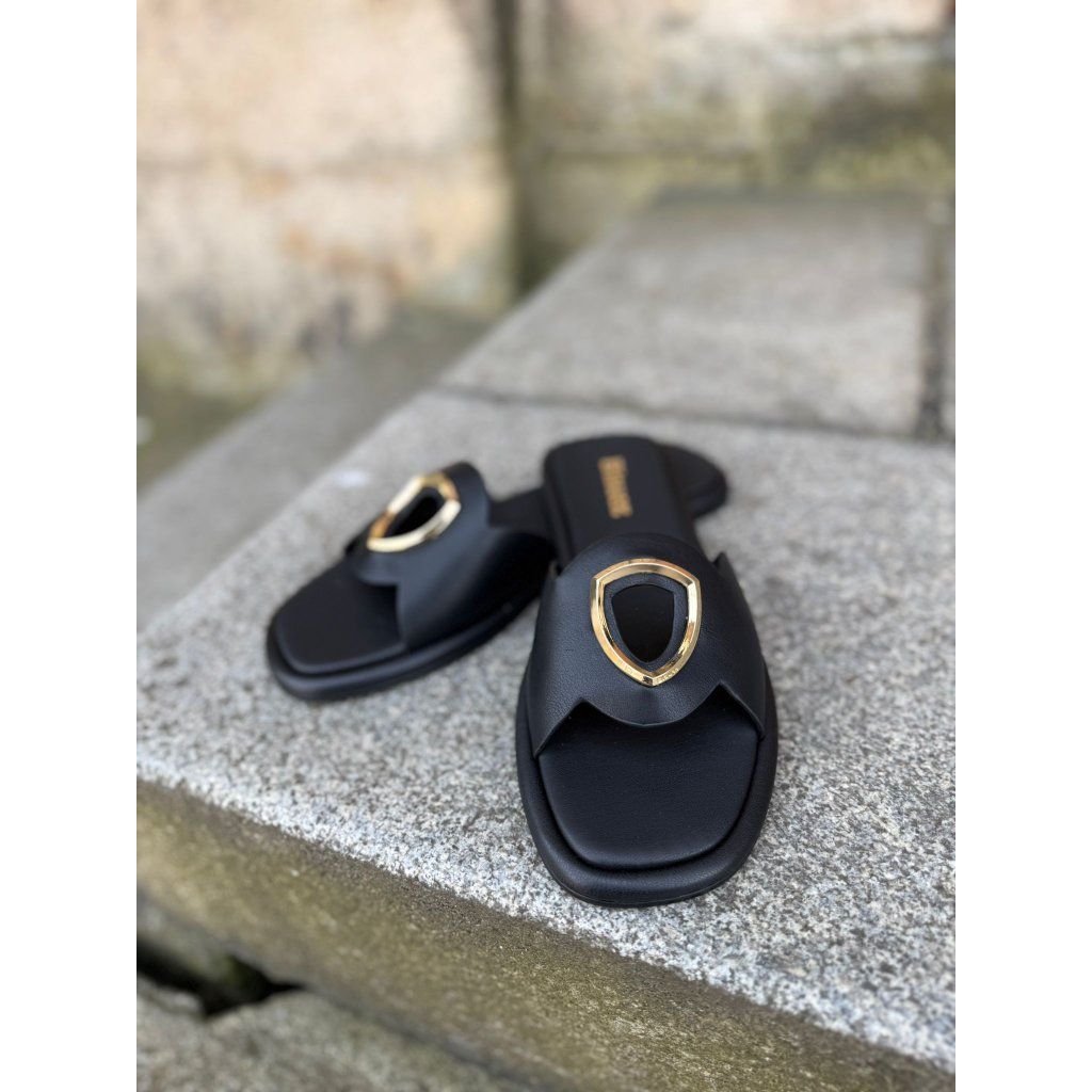 Minimalistický černý design doplňuje decentní logo značky, díky čemuž jsou pantofle velmi univerzální. Skvěle se hodí k letním outfitům – od šatů až po džínové kraťasy či kalhoty – a snadno zapadnou do každodenního městského stylu.