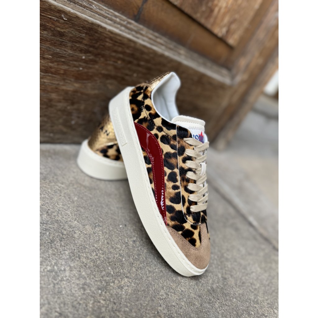 Luxusní dámské tenisky DSQUARED2 Rider v originálním leopardím provedení jsou ikonickým spojením výrazného designu, komfortu a prémiové kvality. Tento model zaujme svým sportovně-elegantním stylem, typickým pro značku DSQUARED2. Tenisky jsou vyrobeny z kombinace kůže, semiše a textilních detailů, které zajišťují odolnost a pohodlí při nošení. Masivní podešev dodává botám moderní vzhled a zároveň poskytuje stabilitu a měkký došlap.