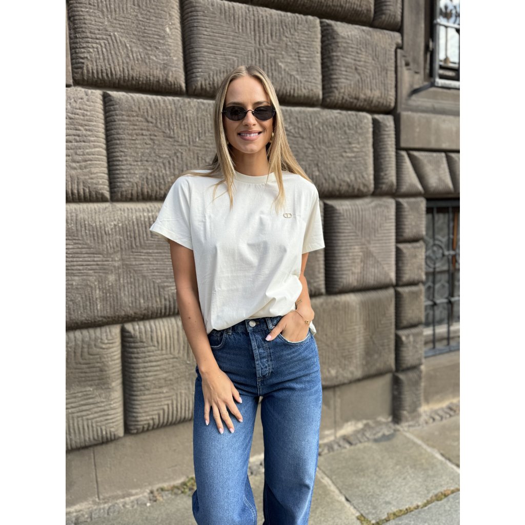 Krémové tričko Twinset ze 100 % bavlny s kamínkovým logem – komfortní a stylový základ pro elegantní i volnočasové outfity.