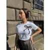 Elegantní dámské tričko značky Twinset v jemné bílé barvě spojuje jednoduchost s ženským detailem, který z něj dělá jedinečný kousek. Vyrobeno z měkké a prodyšné bavlny pro maximální pohodlí při každodenním nošení. Tričko má klasický střih (regular fit) s kulatým výstřihem a krátkými rukávy. Na přední straně je zdobené kontrastní černou krajkovou mašlí, která dodává outfitu elegantní a romantický nádech typický pro značku Twinset.