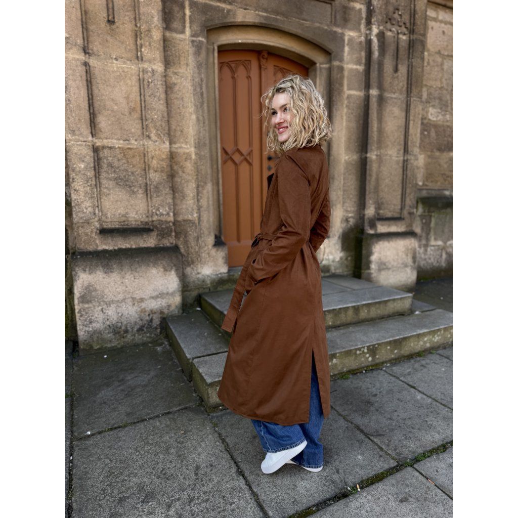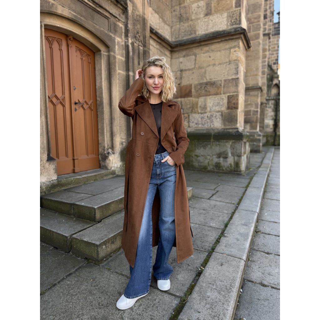 Dámský kabát Twinset 261AP2330 v hnědé barvě. Elegantní trench coat z imitace semiše s páskem.