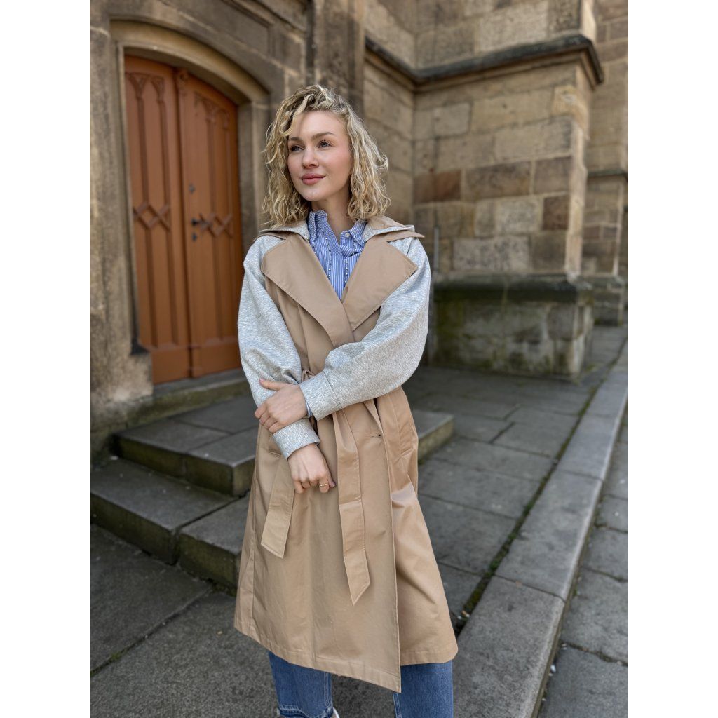 Dámský kabát Twinset 261LL2JBB 13300 v béžové barvě. Moderní trench coat s odnímatelnými prvky a elegantním střihem.