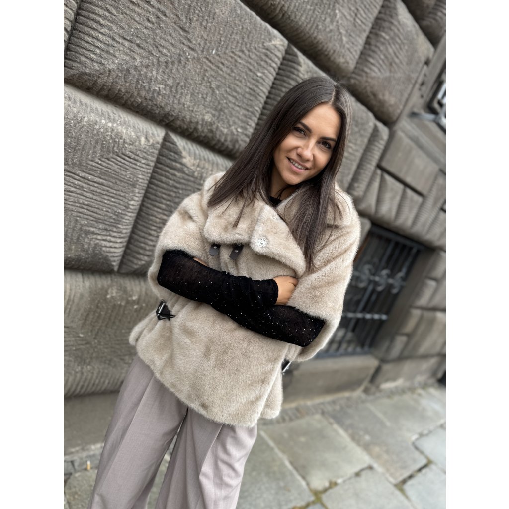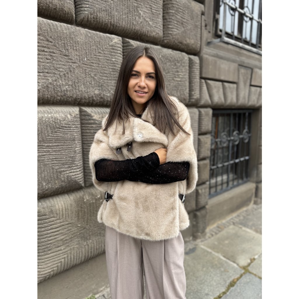 Dámský béžový kožíšek Pinko COMODINO – oversize střih s přezkami