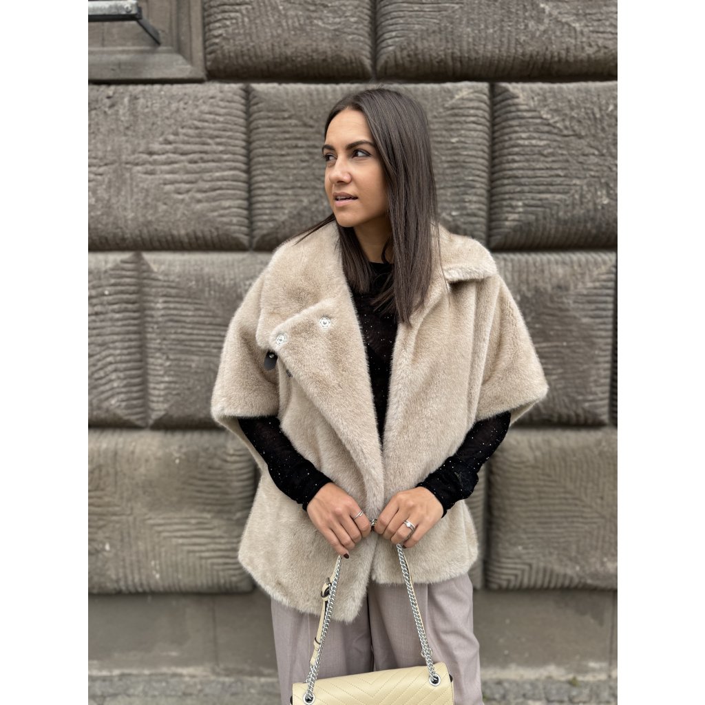 Stylový kožíšek Pinko COMODINO v béžovém odstínu je synonymem elegance, pohodlí a nadčasového designu. Vyroben z hebkého umělého kožešinového materiálu, který působí luxusně na pohled i dotek.