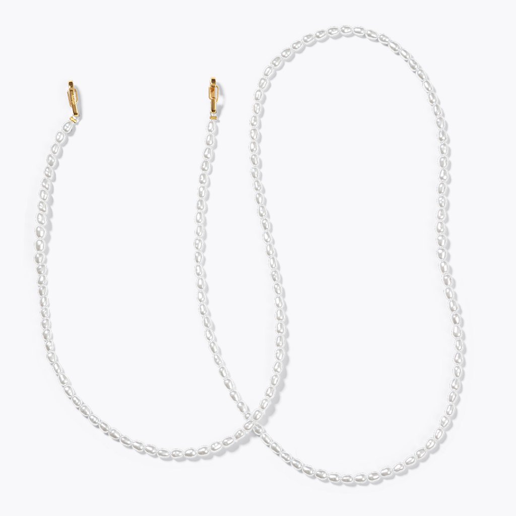 Stylová perlová šňůrka Ateljé se zlatými detaily – elegantní doplněk pro nošení telefonu přes rameno nebo kolem krku.