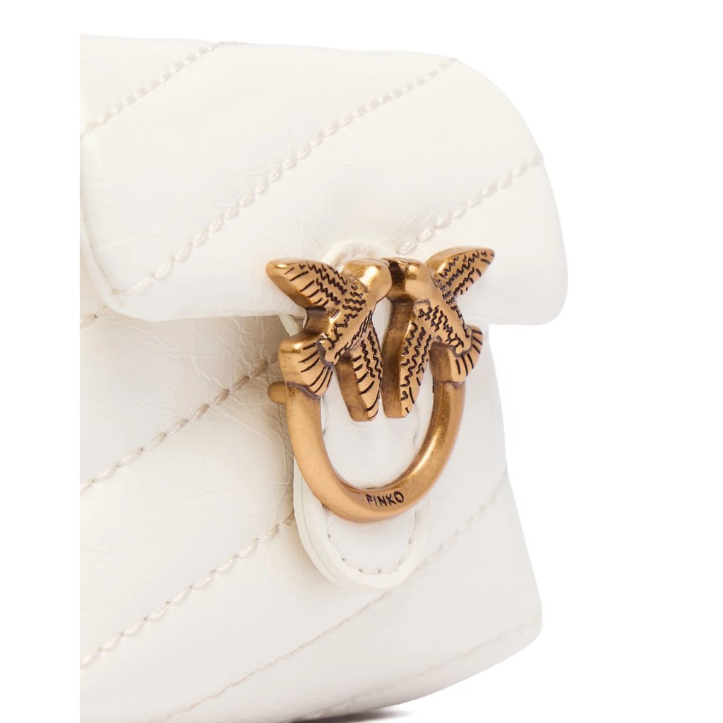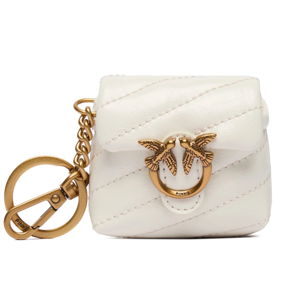 Stylový přívěsek na AirPods Pinko Love Puff z lesklé mikrovláknové kůže v bílé barvě. Ikonické logo Love Birds, praktické zapínání a kovový kroužek pro snadné připnutí na kabelku či klíče.
