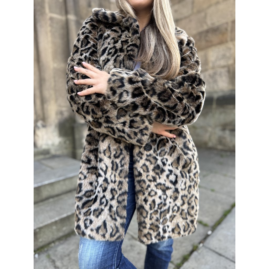 Luxusní dámský kožich Twinset s leopardím potiskem. Stylový kousek, který dodá vašemu outfitu výrazný a elegantní vzhled.