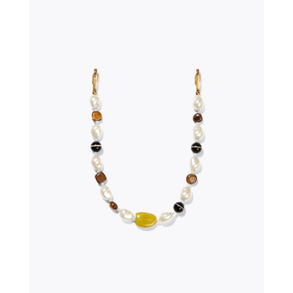 Ateljé přívěsek na kryt zaujme kontrastní kombinací béžových korálků s černým tečkovaným vzorem, která působí hravě a zároveň elegantně. Díky výraznějšímu designu se stává nepřehlédnutelným doplňkem každého outfitu.